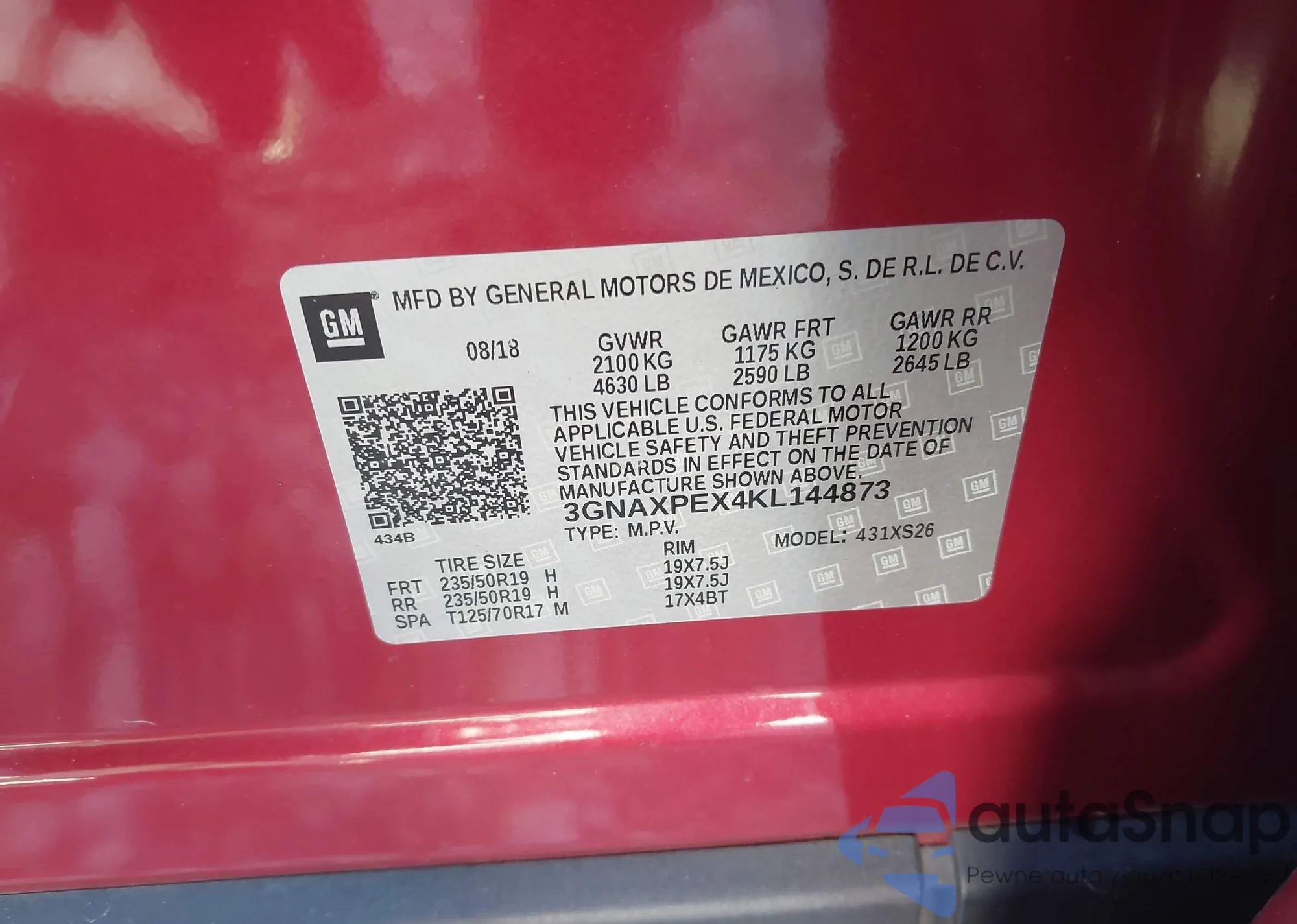 Samochód Chevrolet Equinox 2019 (VIN 3GNAXPEX4KL144873) nie był wcześniej licytowany. Dokumenty są czyste, przebieg odpowiada lub jest niższy niż średnia rynku. Sprzedaje go firma ubezpieczeniowa – polecamy zakup. Dostawa do portu zajmie ok. 6–8 tygodni.