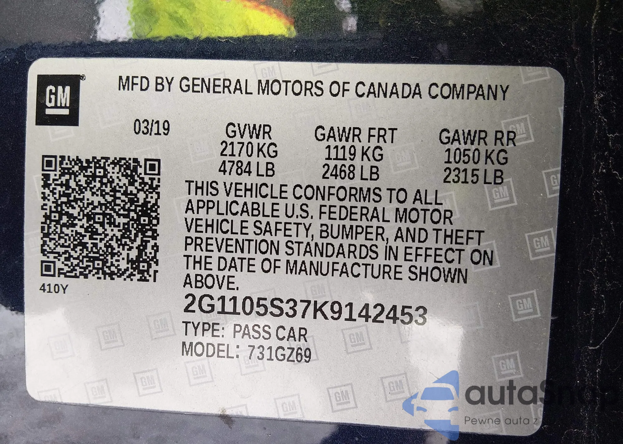 VIN: 2G1105S37K9142453