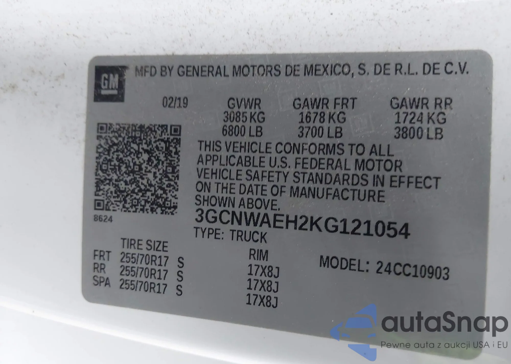 VIN: 3GCNWAEH2KG121054