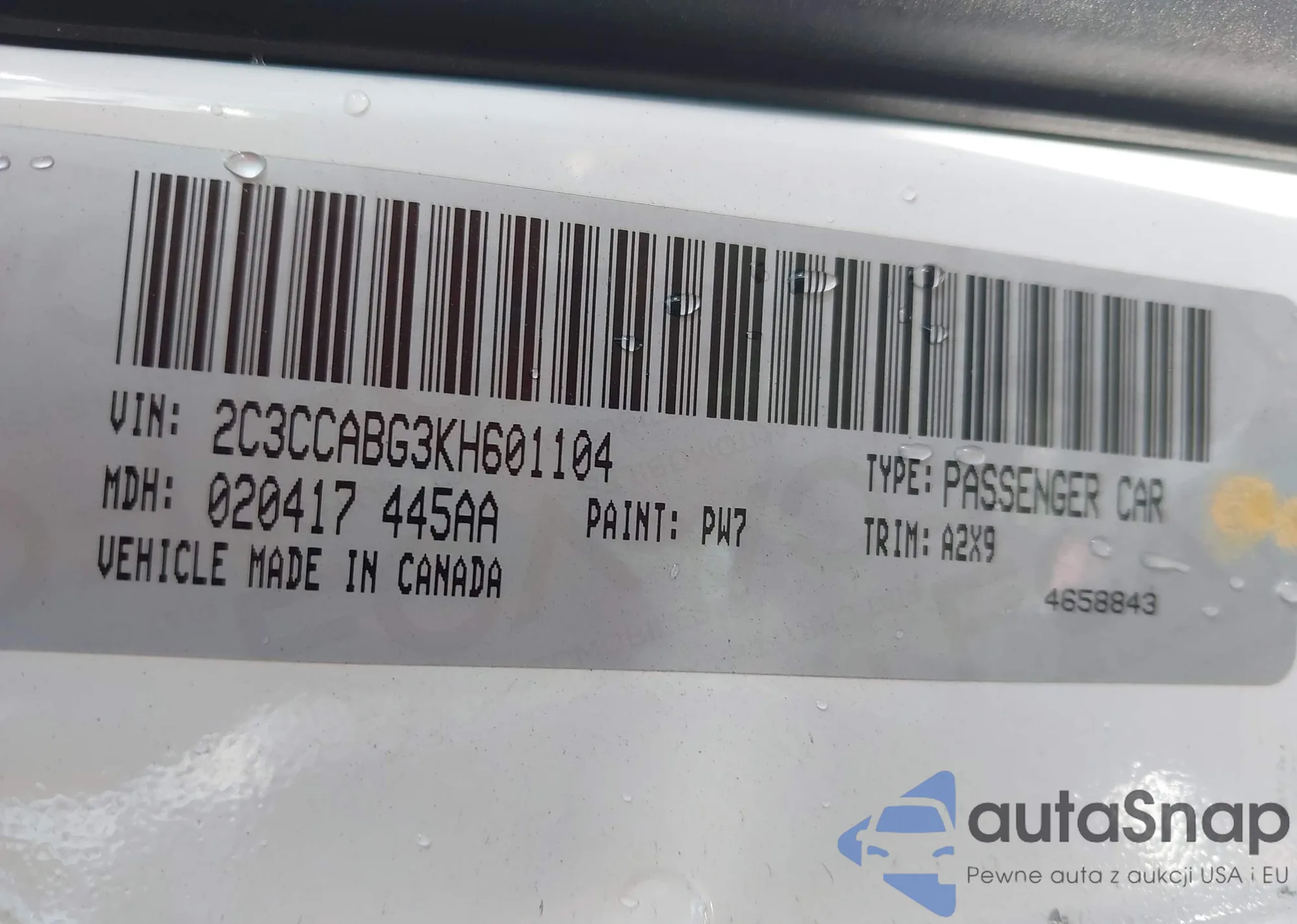 • VIN: 2C3CCABG3KH601104