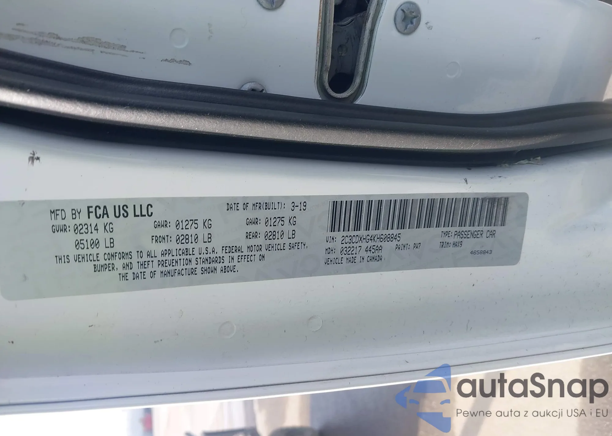 Samochód Dodge Charger 2019 (VIN 2C3CDXHG4KH608845) nie był wcześniej licytowany. Dokumenty są czyste, przebieg odpowiada lub jest niższy niż średnia rynku. Sprzedaje go firma ubezpieczeniowa – polecamy zakup. Dostawa do portu zajmie ok. 6–8 tygodni.