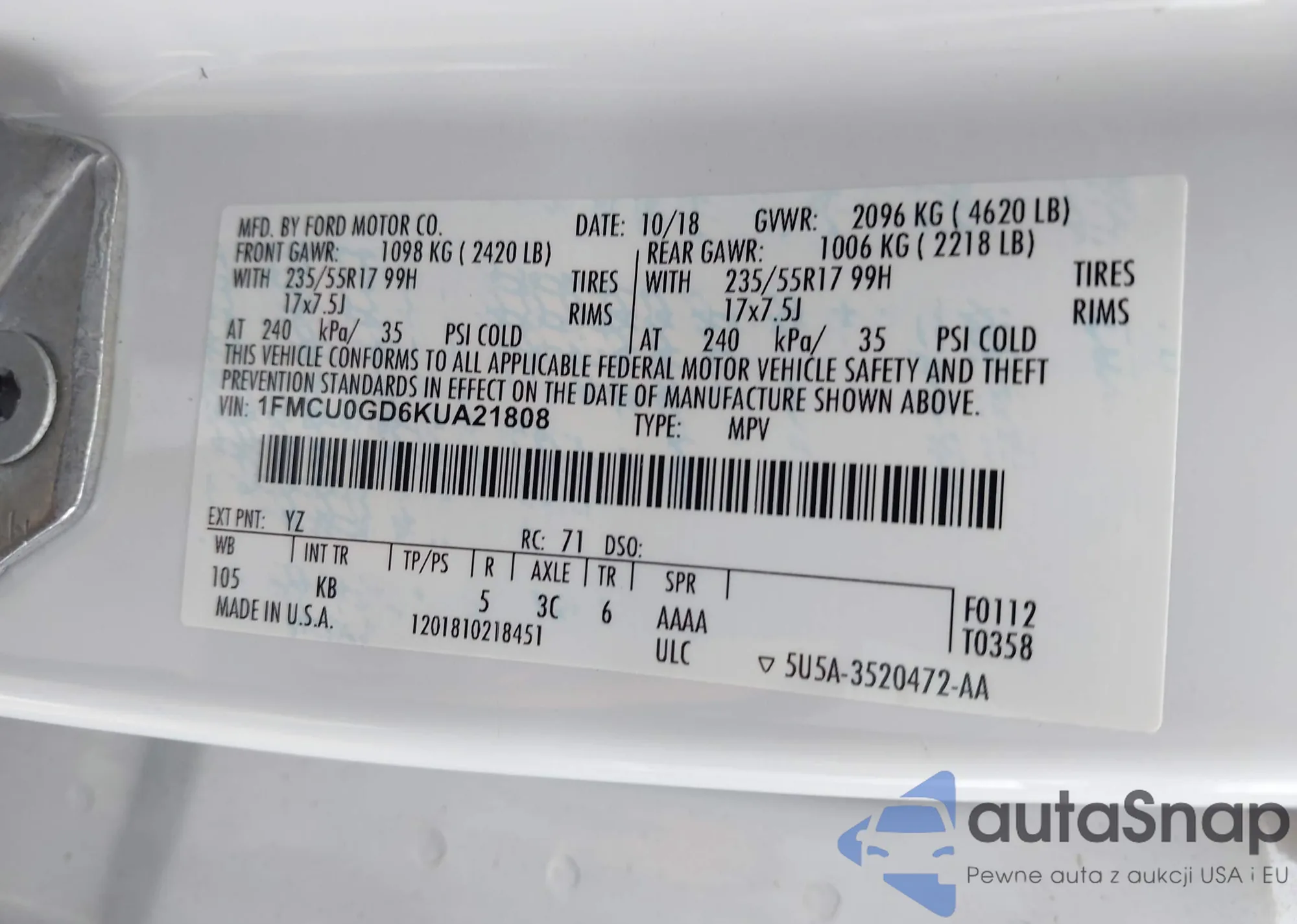VIN: 1FMCU0GD6KUA21808