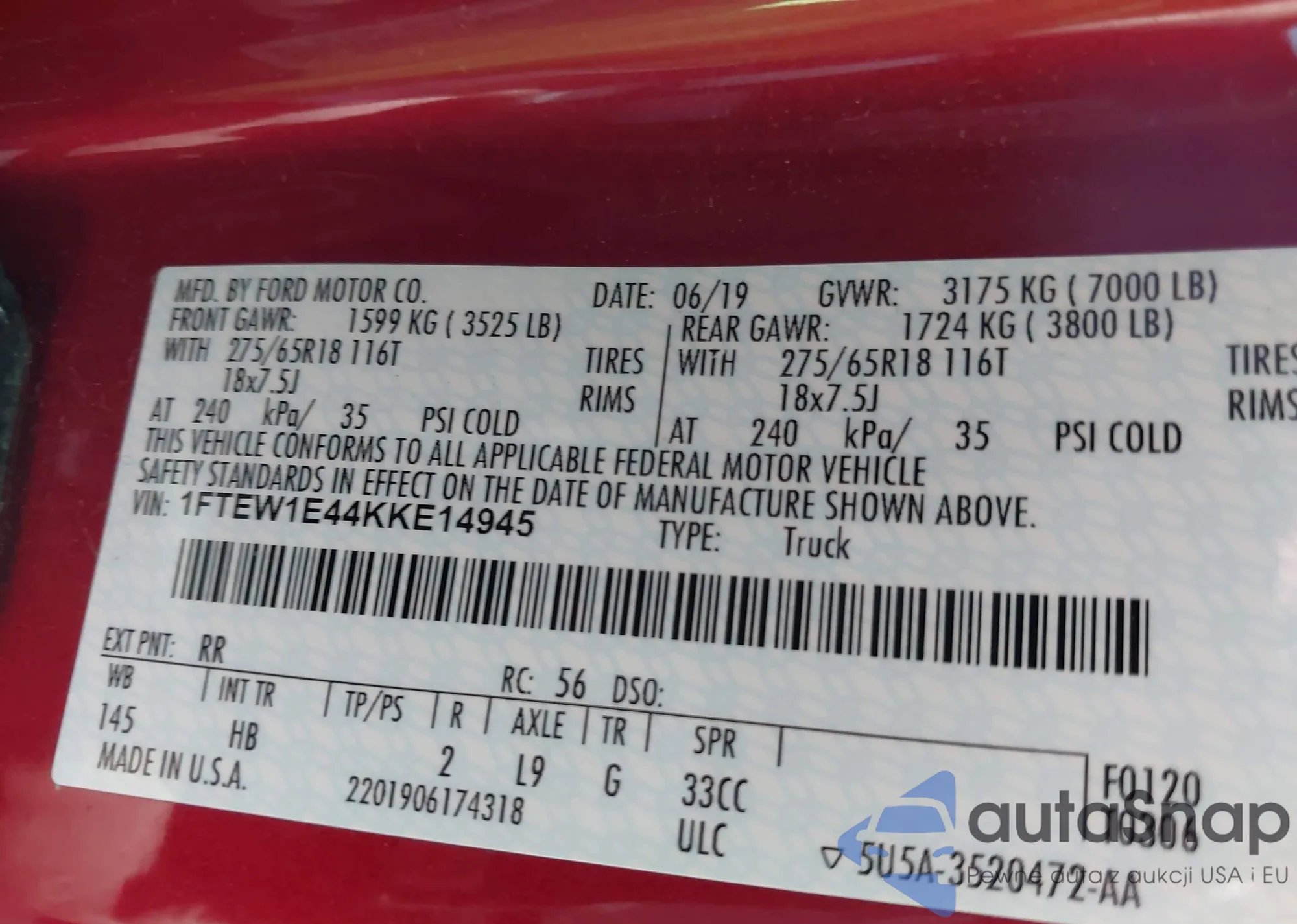 VIN: 1FTEW1E44KKE14945