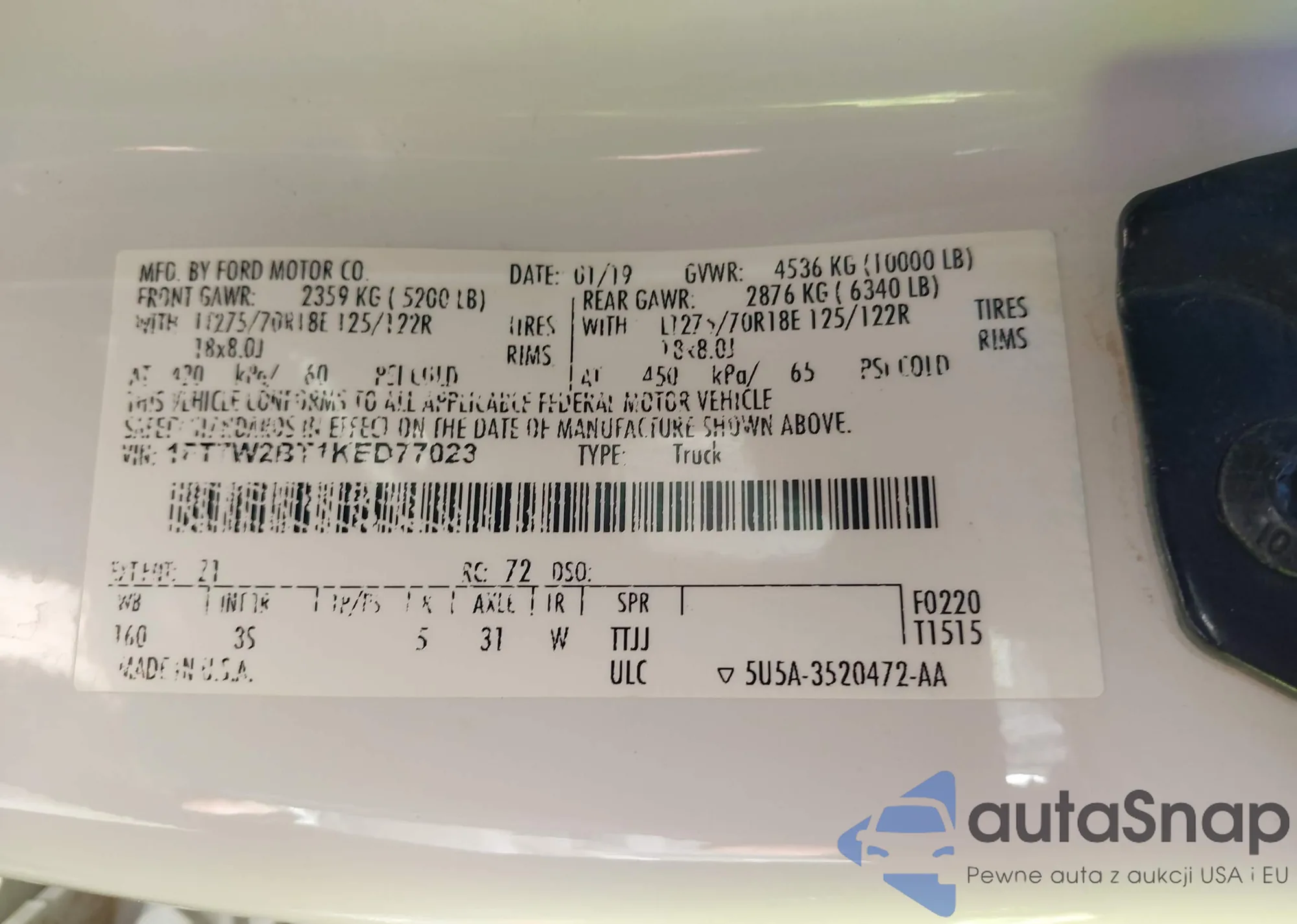 Samochód Ford F250 2019 (VIN 1FT7W2BT1KED77023) nie był wcześniej licytowany. Dokumenty są czyste, przebieg odpowiada lub jest niższy niż średnia rynku. Sprzedaje go firma ubezpieczeniowa – polecamy zakup. Dostawa do portu zajmie ok. 6–8 tygodni.