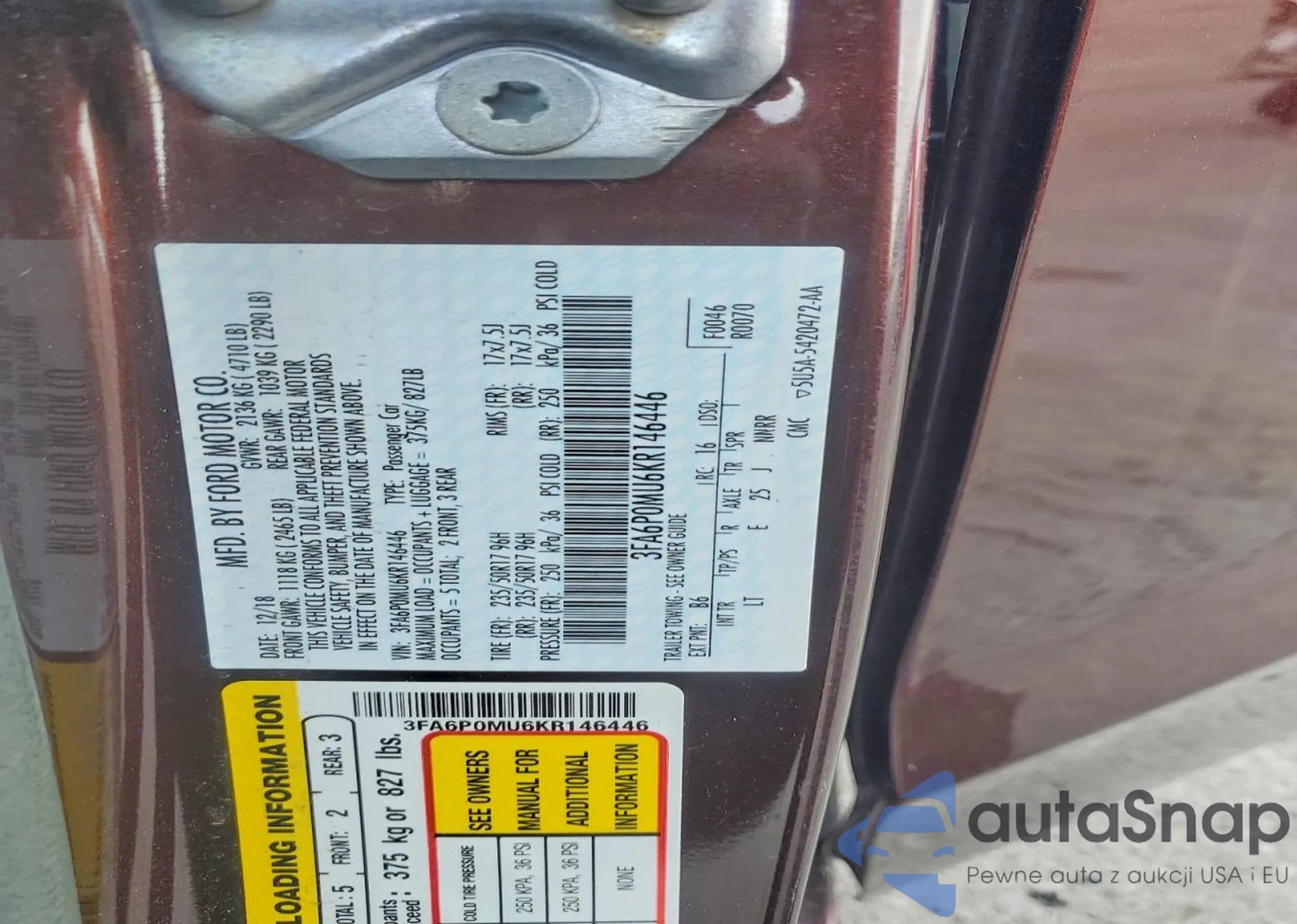 VIN: 3FA6P0MU6KR146446