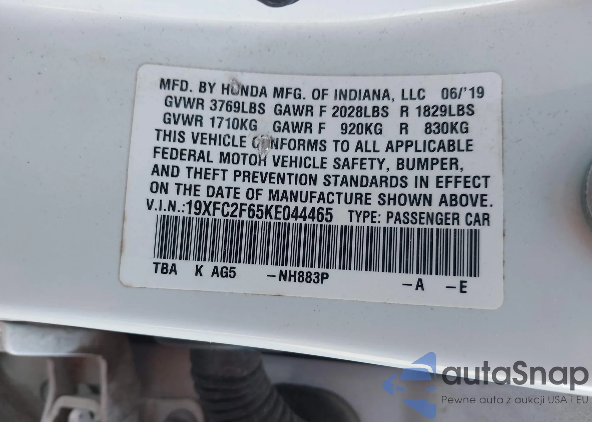 Samochód Honda Civic 2019 (VIN 19XFC2F65KE044465) nie był wcześniej licytowany. Dokumenty są czyste, przebieg odpowiada lub jest niższy niż średnia rynku. Sprzedaje go firma ubezpieczeniowa – polecamy zakup. Dostawa do portu zajmie ok. 6–8 tygodni.