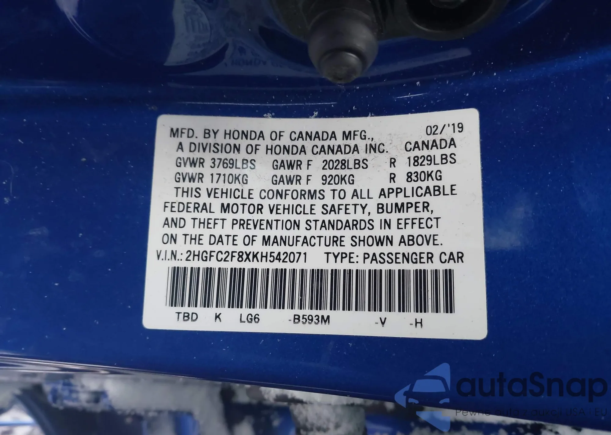 Samochód Honda Civic 2019 (VIN 2HGFC2F8XKH542071) nie był wcześniej licytowany. Dokumenty są czyste, przebieg odpowiada lub jest niższy niż średnia rynku. Sprzedaje go firma ubezpieczeniowa – polecamy zakup. Dostawa do portu zajmie ok. 6–8 tygodni.
