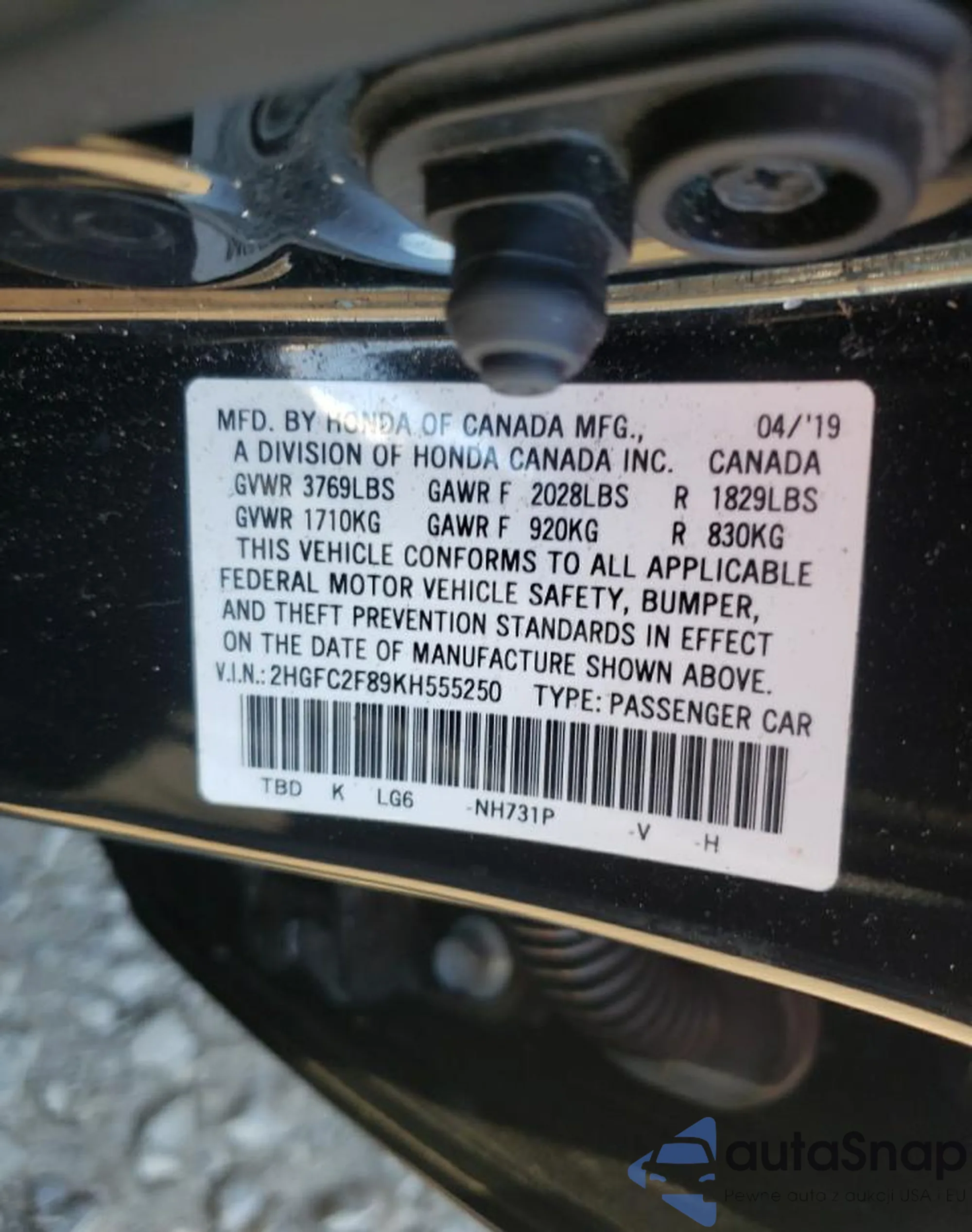 Samochód Honda Civic 2019 (VIN 2HGFC2F89KH555250) nie był wcześniej licytowany. Dokumenty są czyste, przebieg odpowiada lub jest niższy niż średnia rynku. Sprzedaje go firma ubezpieczeniowa – polecamy zakup. Dostawa do portu zajmie ok. 6–8 tygodni.