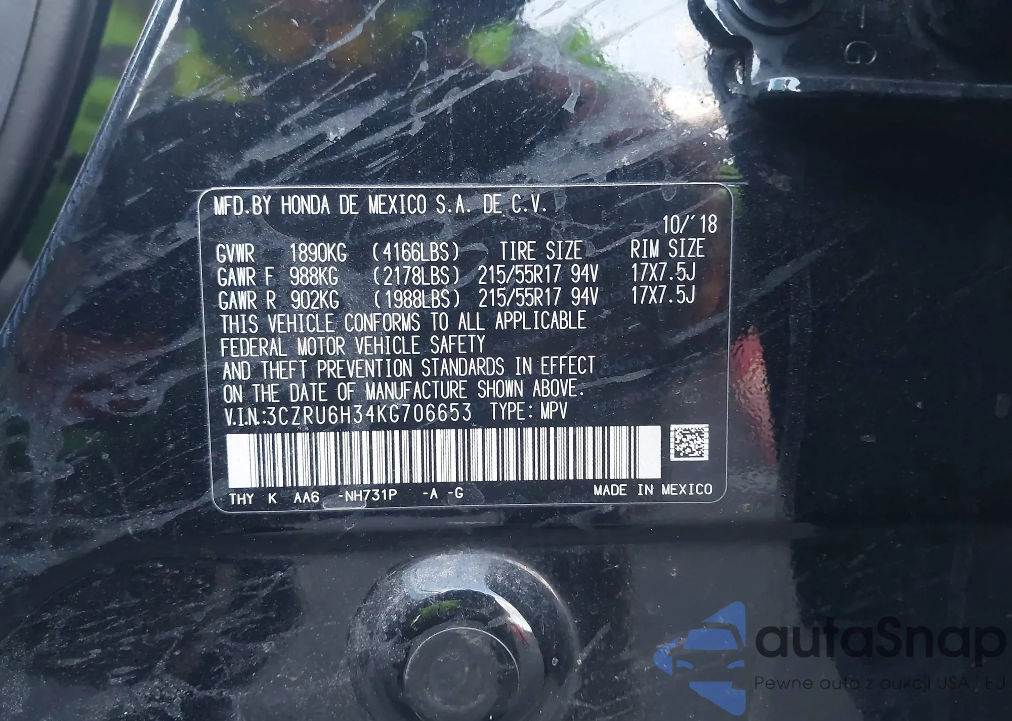Samochód Honda HR-V 2019 (VIN 3CZRU6H34KG706653) nie był wcześniej licytowany. Dokumenty są czyste, przebieg odpowiada lub jest niższy niż średnia rynku. Sprzedaje go firma ubezpieczeniowa – polecamy zakup. Dostawa do portu zajmie ok. 6–8 tygodni.