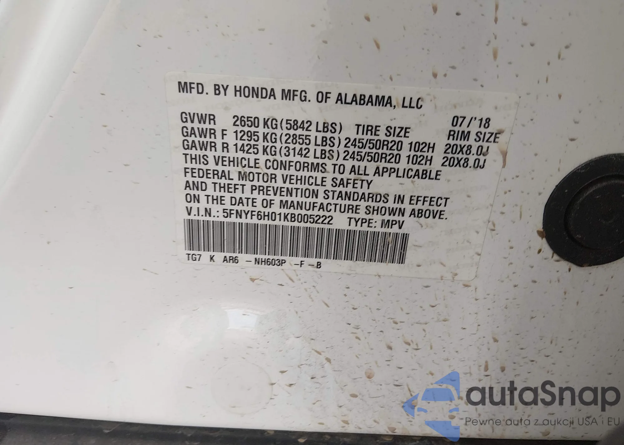 Samochód Honda Pilot 2019 (VIN 5FNYF6H01KB005222) nie był wcześniej licytowany. Dokumenty są czyste, przebieg odpowiada lub jest niższy niż średnia rynku. Sprzedaje go firma ubezpieczeniowa – polecamy zakup. Dostawa do portu zajmie ok. 6–8 tygodni.
