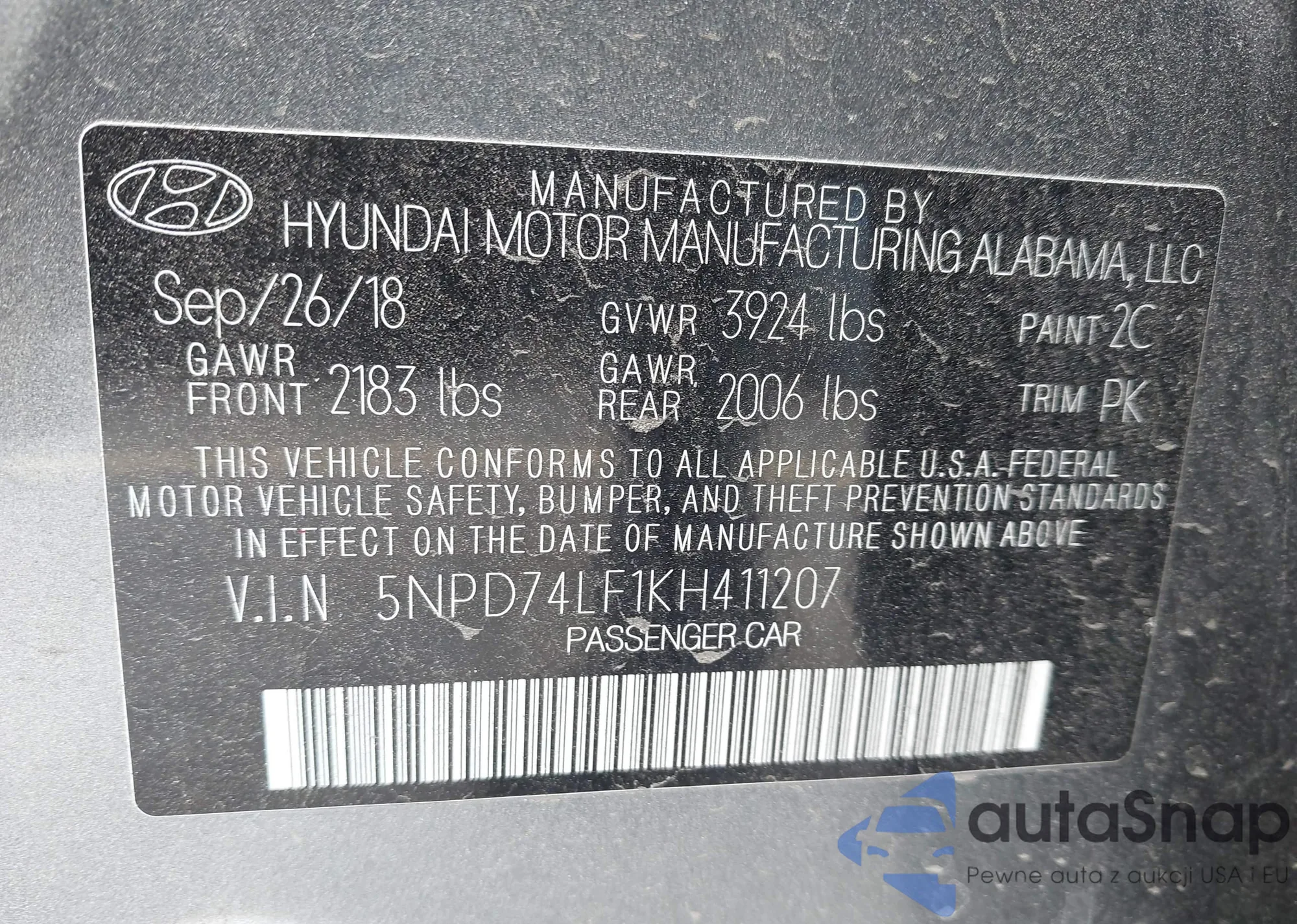 • VIN: 5NPD74LF1KH411207