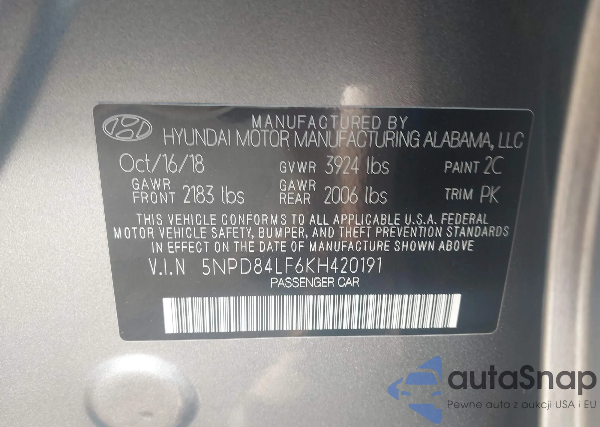 Samochód Hyundai Elantra 2019 (VIN 5NPD84LF6KH420191) nie był wcześniej licytowany. Dokumenty są czyste, przebieg odpowiada lub jest niższy niż średnia rynku. Sprzedaje go firma ubezpieczeniowa – polecamy zakup. Dostawa do portu zajmie ok. 6–8 tygodni.