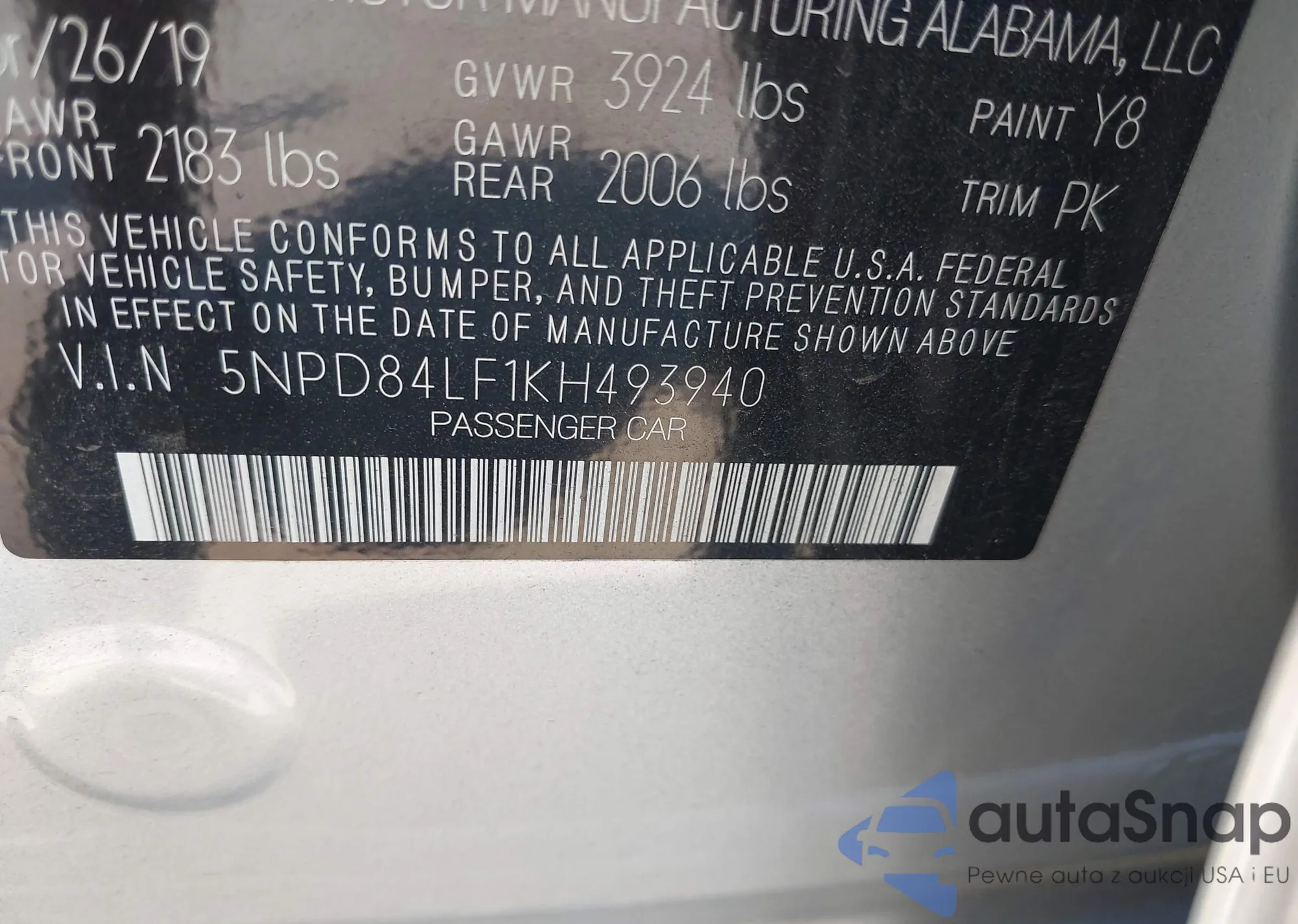 • VIN: 5NPD84LF1KH493940