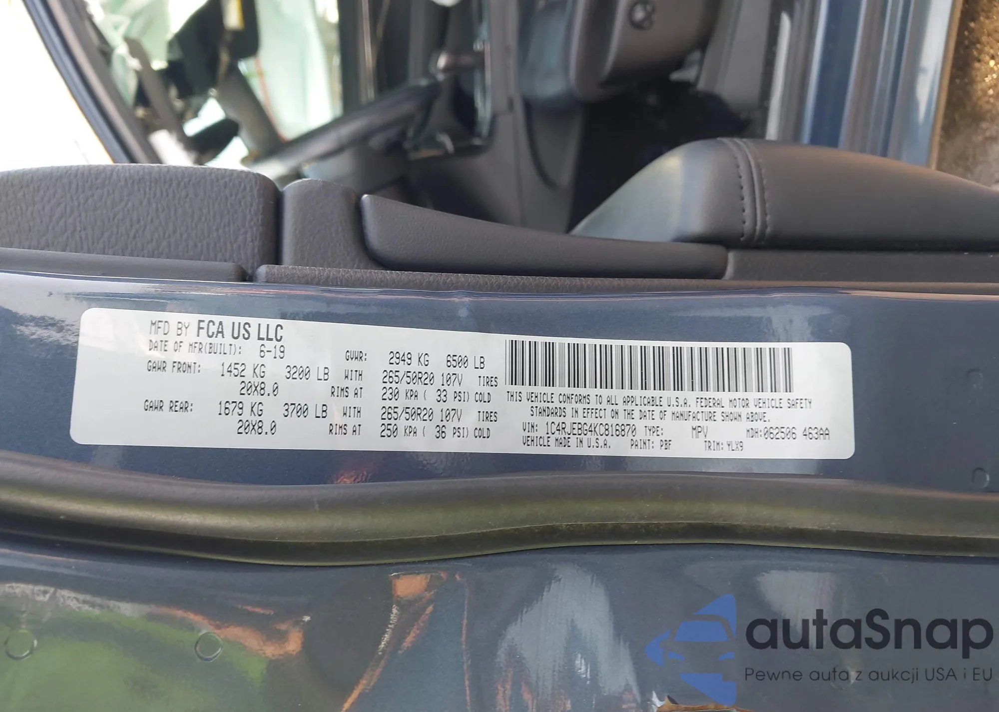 Samochód Jeep Grand Cherokee 2019 (VIN 1C4RJEBG4KC816870) nie był wcześniej licytowany. Dokumenty są czyste, przebieg odpowiada lub jest niższy niż średnia rynku. Sprzedaje go firma ubezpieczeniowa – polecamy zakup. Dostawa do portu zajmie ok. 6–8 tygodni.