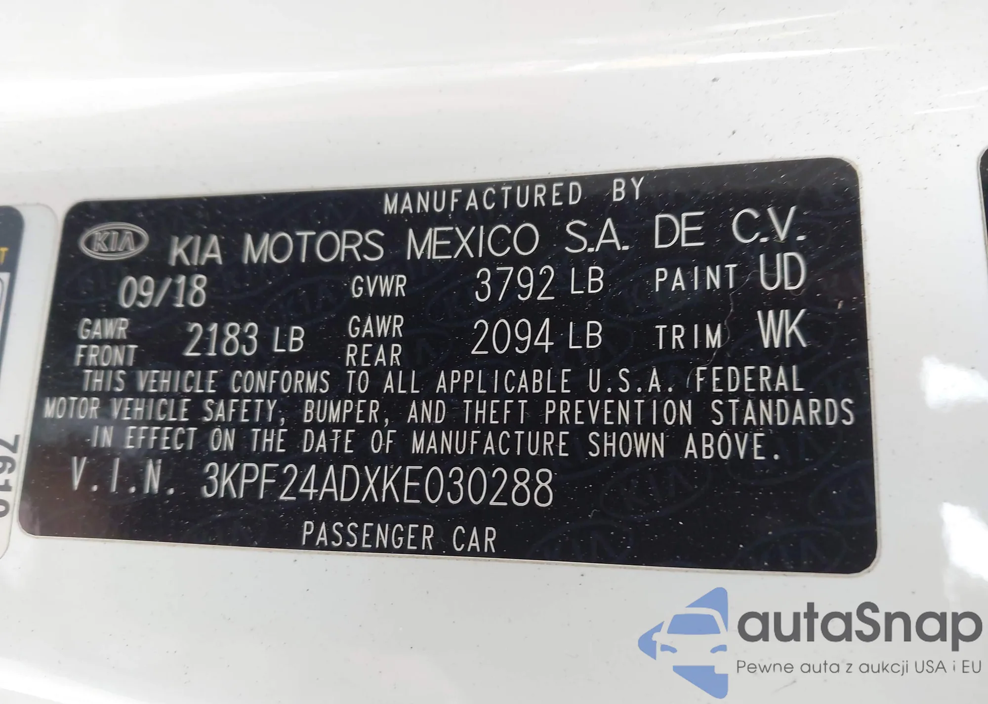 • VIN: 3KPF24ADXKE030288