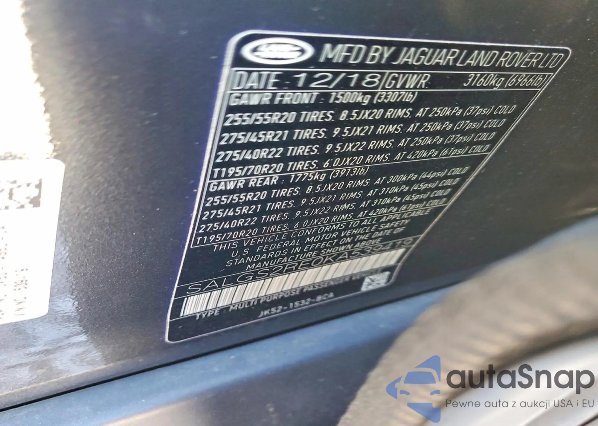 • VIN: SALGS2RE0KA539419