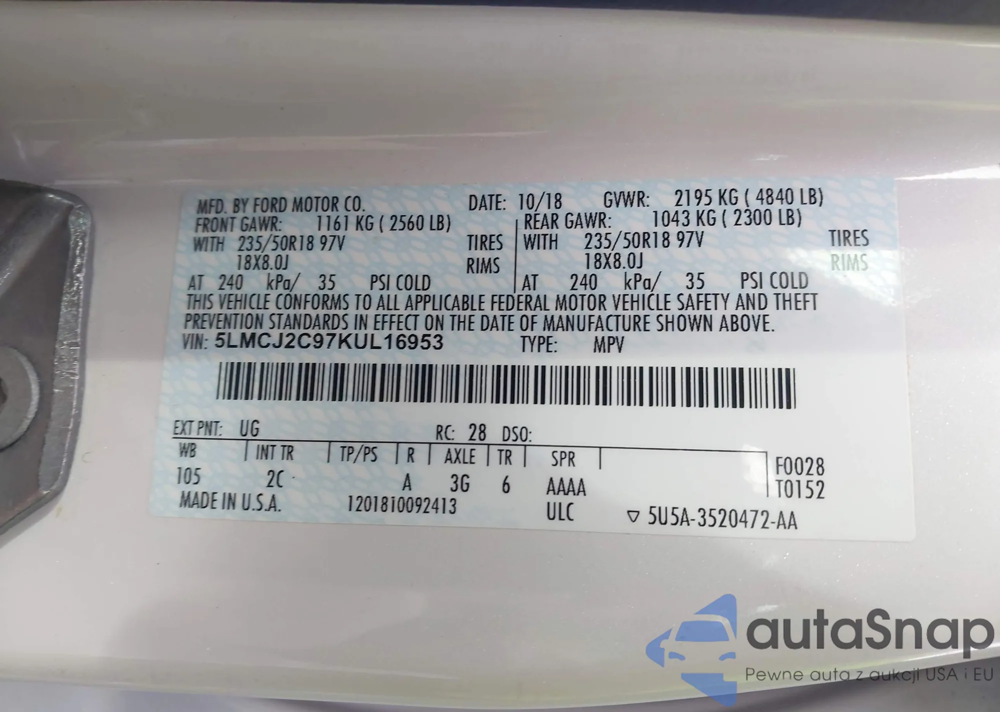 • VIN: 5LMCJ2C97KUL16953