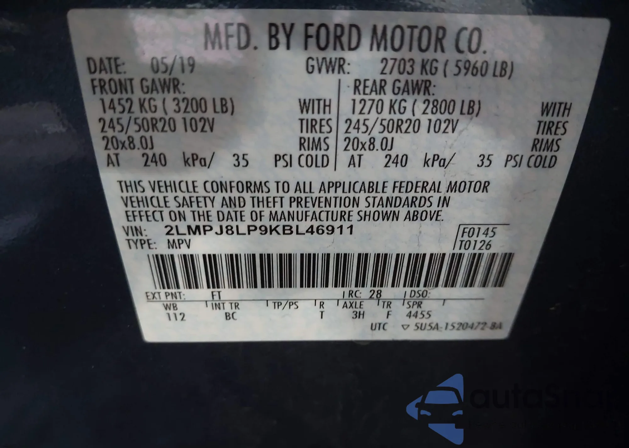 • VIN: 2LMPJ8LP9KBL46911