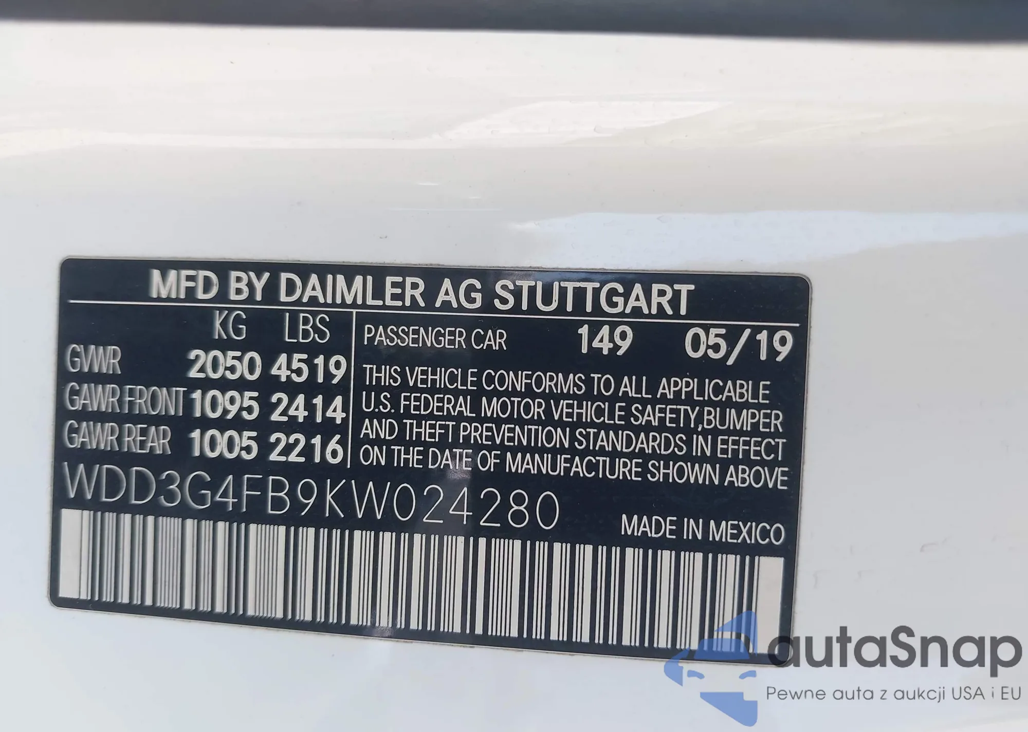 VIN: WDD3G4FB9KW024280