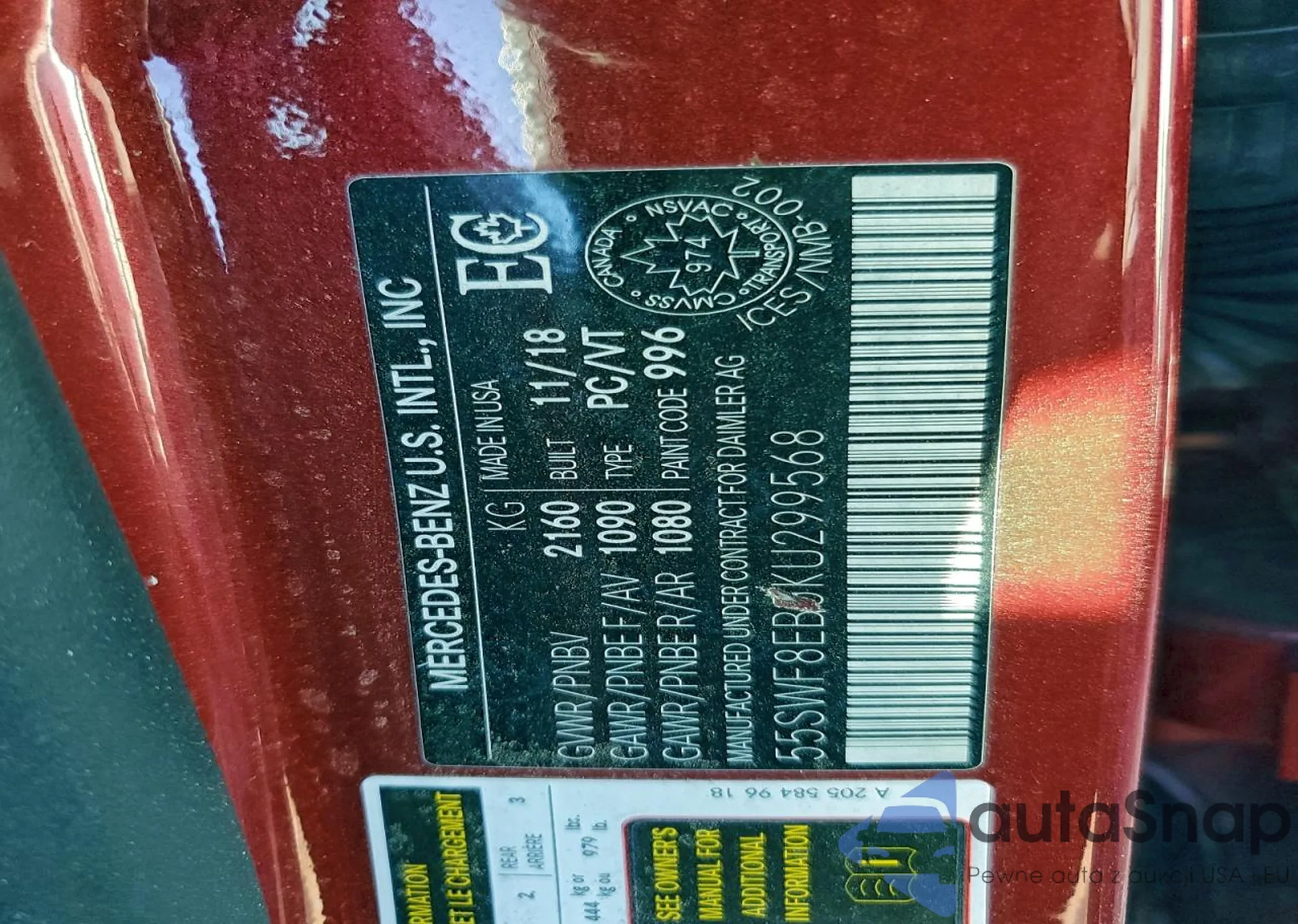 Samochód Mercedes-Benz C-klasse 2019 (VIN 55SWF8EB5KU299568) sprzedaje go niezweryfikowany sprzedawca. Zalecamy raport Carfax i potwierdzenie możliwości rejestracji pojazdu przed zakupem.