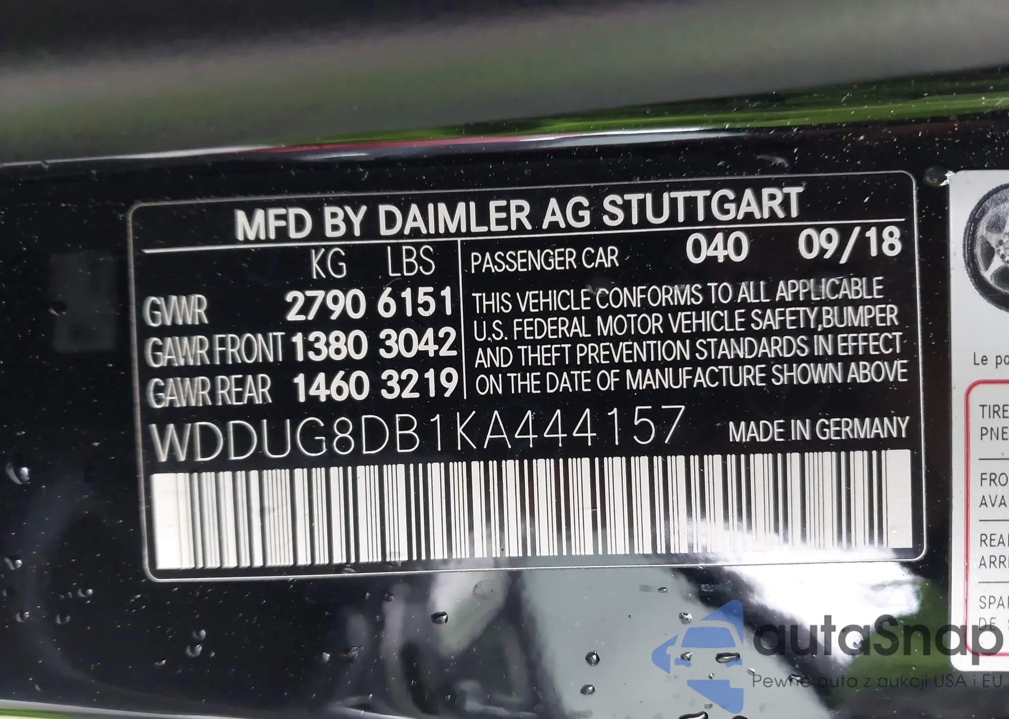 • VIN: WDDUG8DB1KA444157
