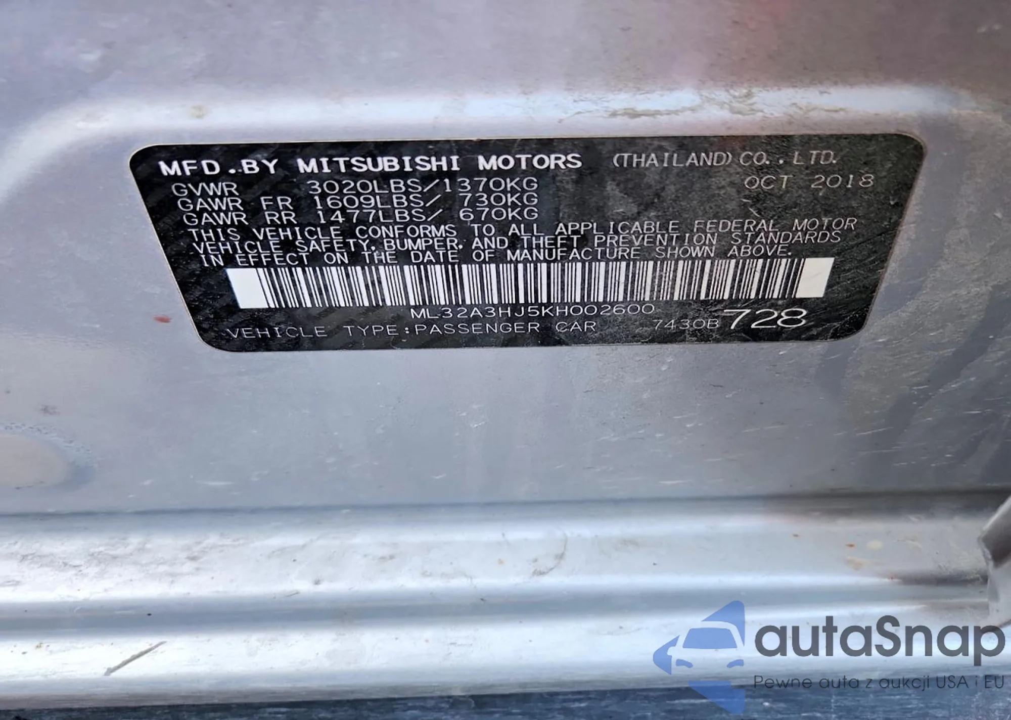 Samochód Mitsubishi Mirage 2019 (VIN ML32A3HJ5KH002600) sprzedaje go niezweryfikowany sprzedawca. Zalecamy raport Carfax i potwierdzenie możliwości rejestracji pojazdu przed zakupem.