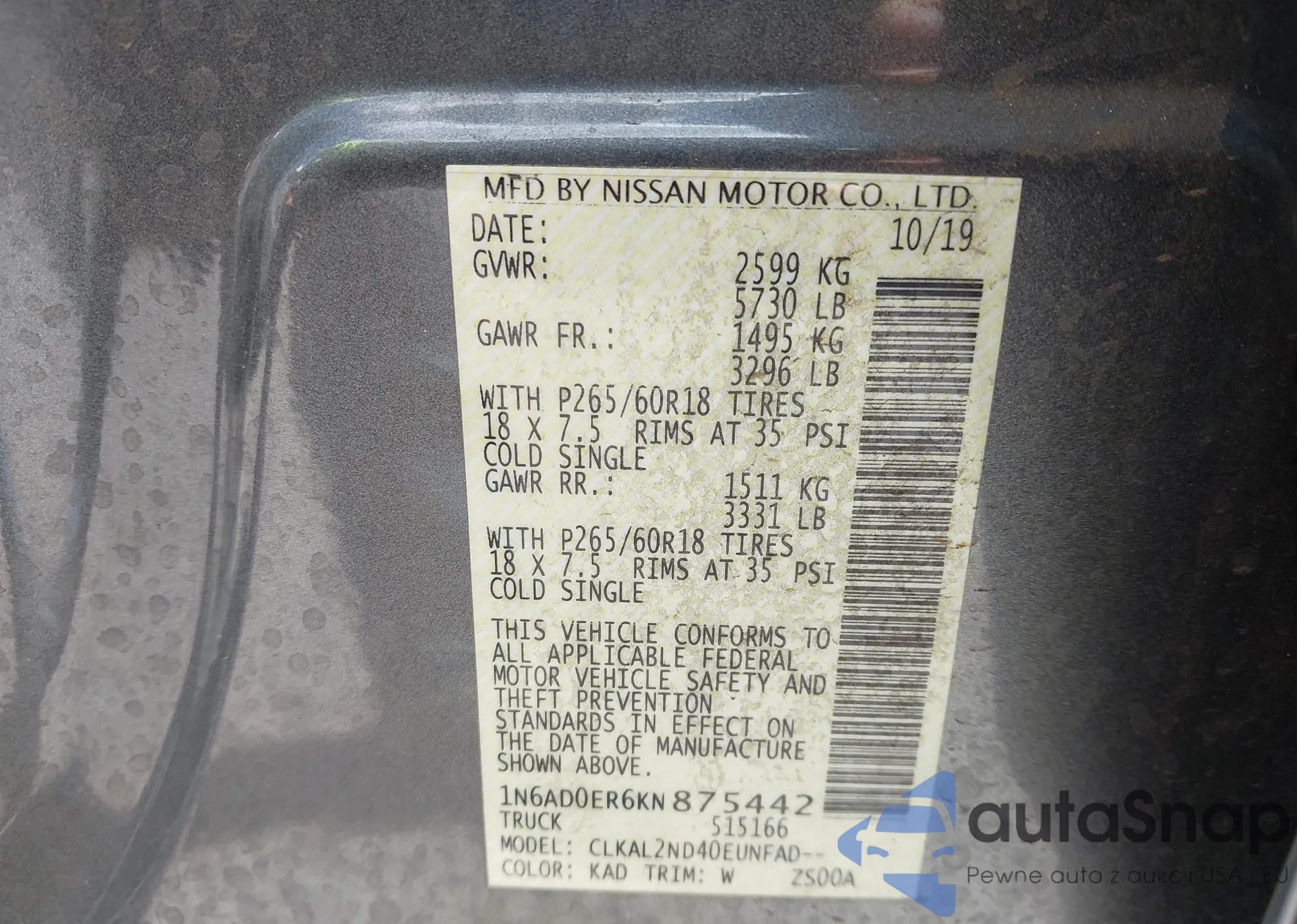 • VIN: 1N6AD0ER6KN875442