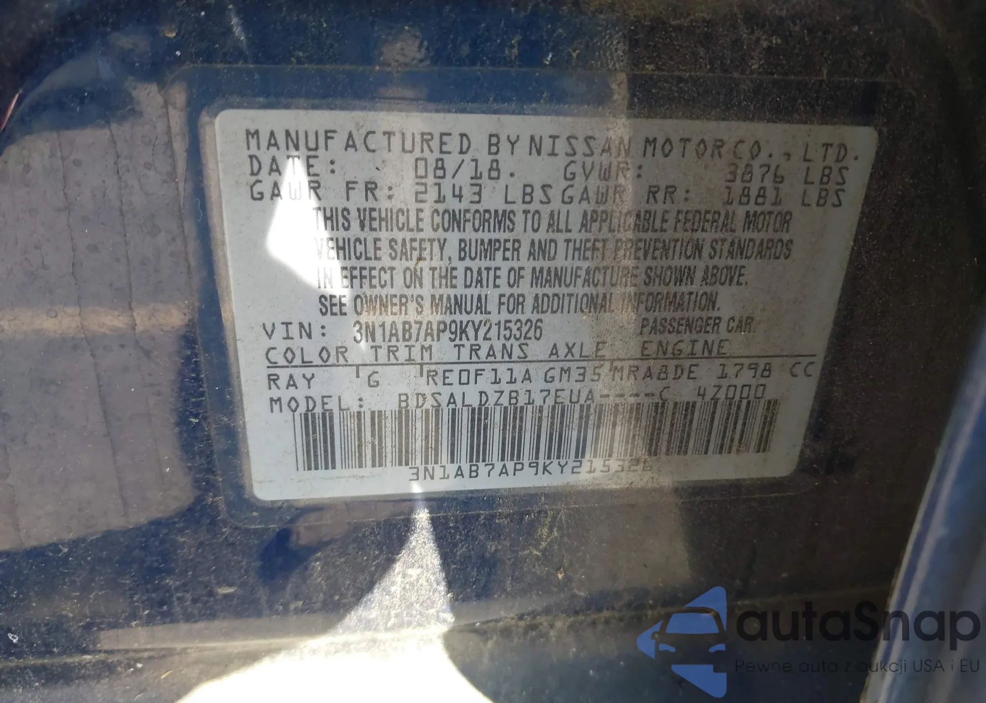 • VIN: 3N1AB7AP9KY215326