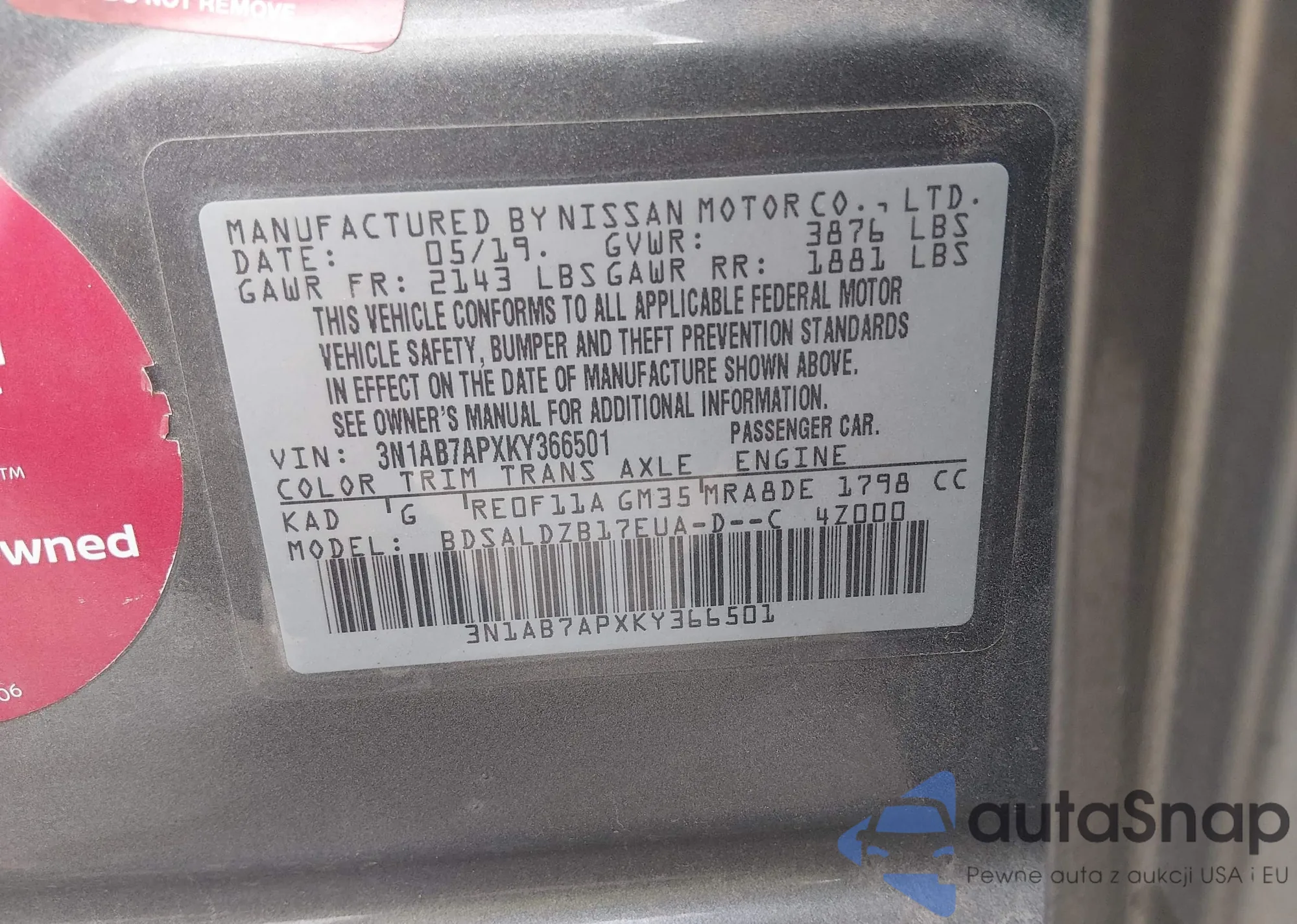 • VIN: 3N1AB7APXKY366501