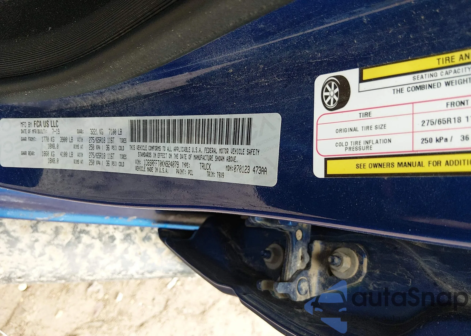 • VIN: 1C6SRFFT0KN924079