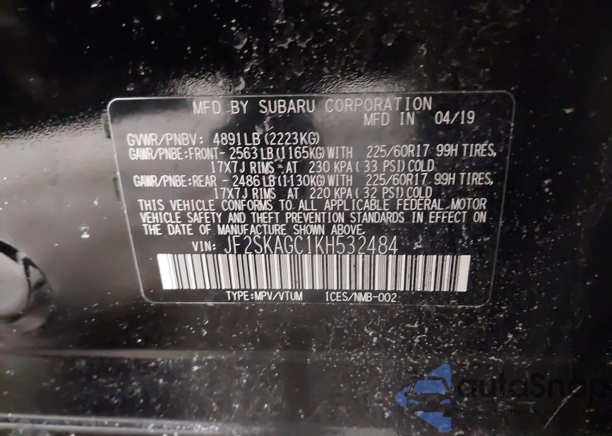 VIN: JF2SKAGC1KH532484