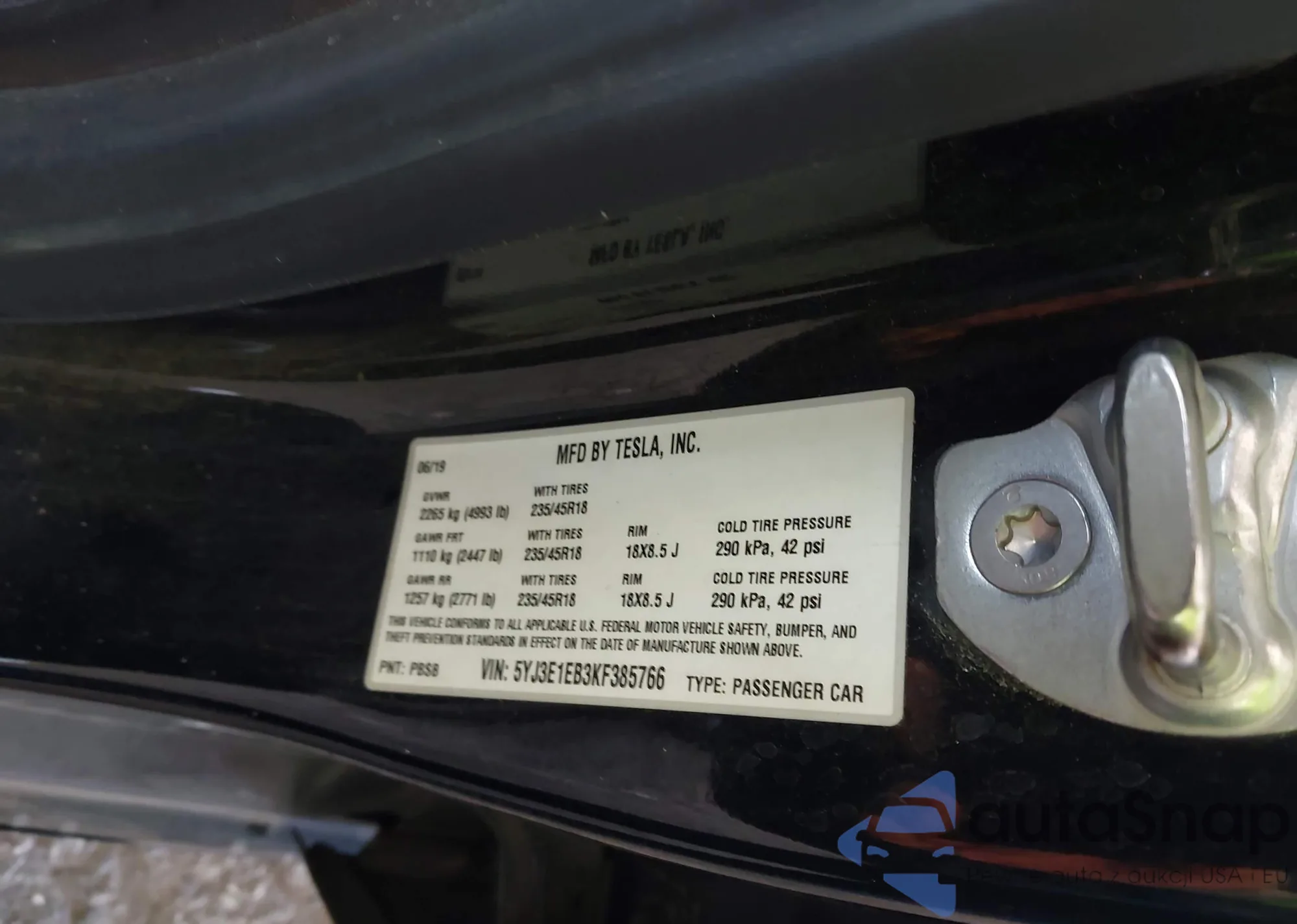 • VIN: 5YJ3E1EB3KF385766