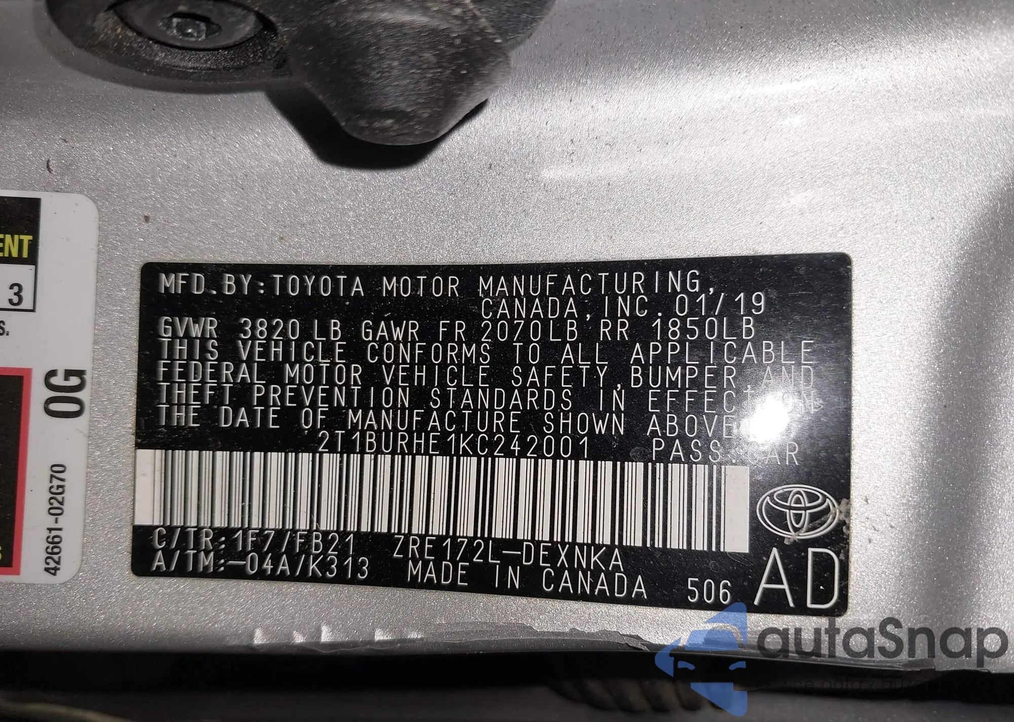 Samochód Toyota Corolla 2019 (VIN 2T1BURHE1KC242001) nie był wcześniej licytowany. Dokumenty są czyste, przebieg odpowiada lub jest niższy niż średnia rynku. Sprzedaje go firma ubezpieczeniowa – polecamy zakup. Dostawa do portu zajmie ok. 6–8 tygodni.