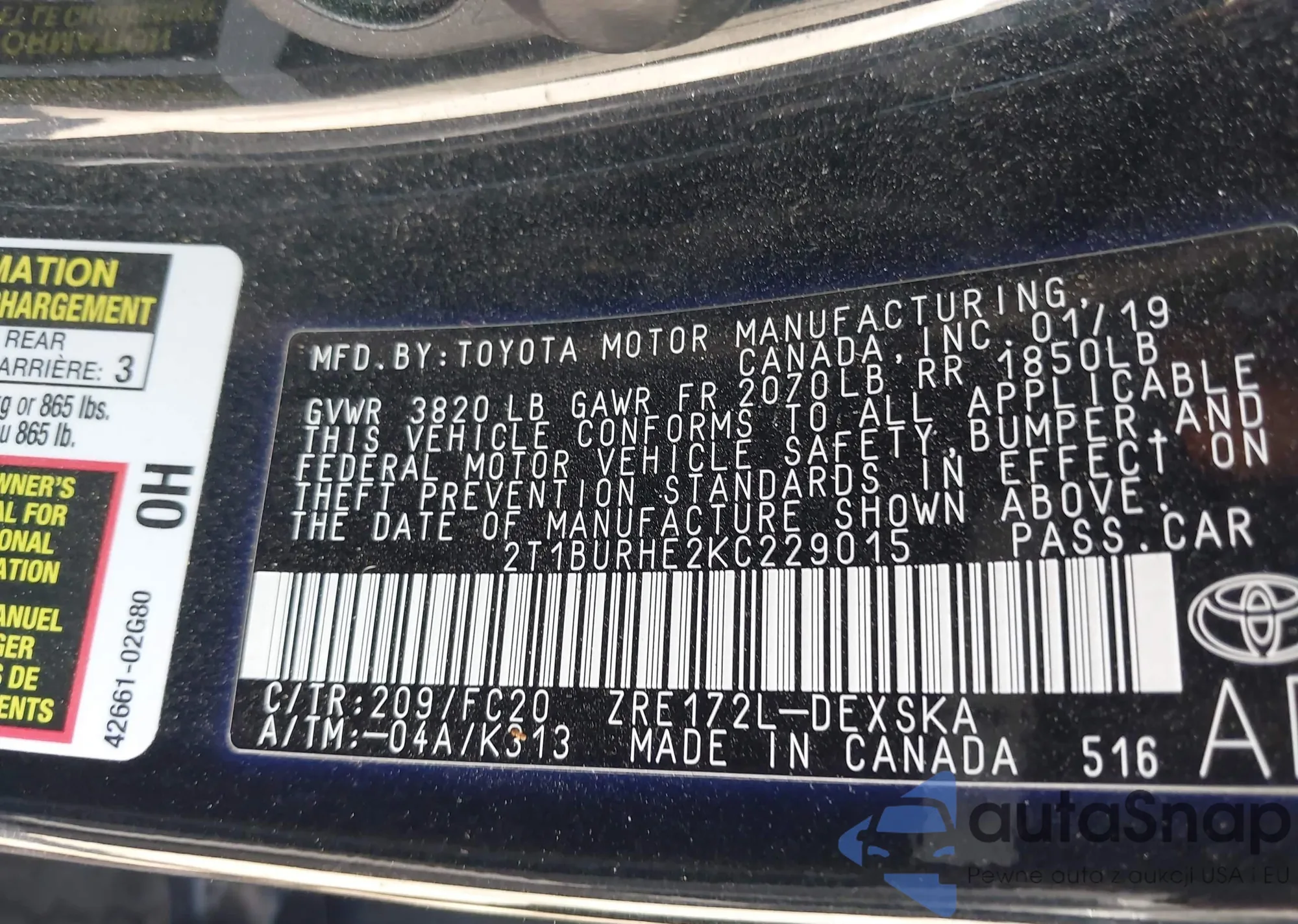 VIN: 2T1BURHE2KC229015