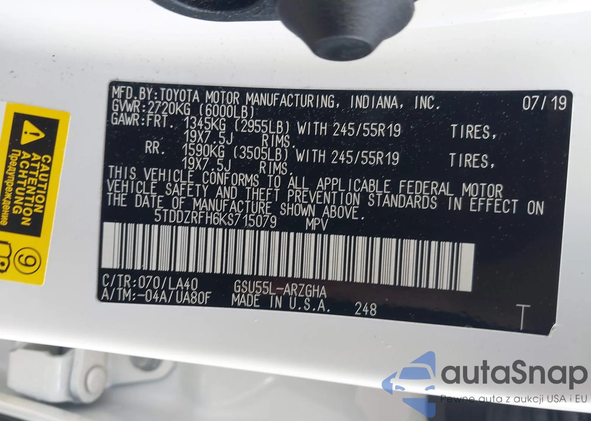 Samochód Toyota Highlander 2019 (VIN 5TDDZRFH6KS715079) nie był wcześniej licytowany. Dokumenty są czyste, przebieg odpowiada lub jest niższy niż średnia rynku. Sprzedaje go firma ubezpieczeniowa – polecamy zakup. Dostawa do portu zajmie ok. 6–8 tygodni.