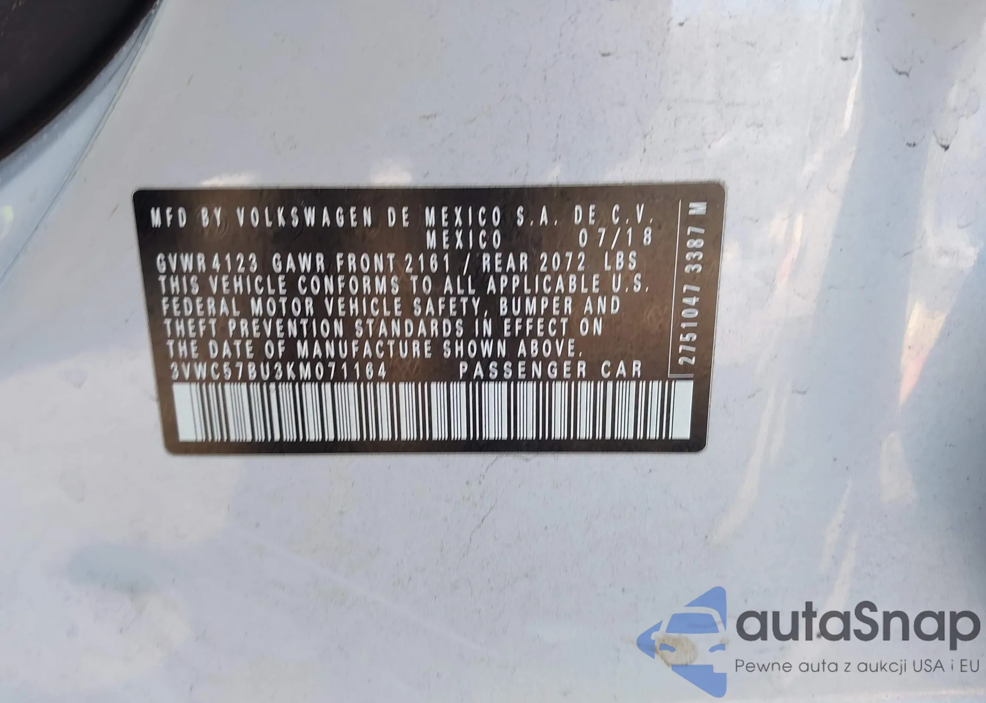 • VIN: 3VWC57BU3KM071164