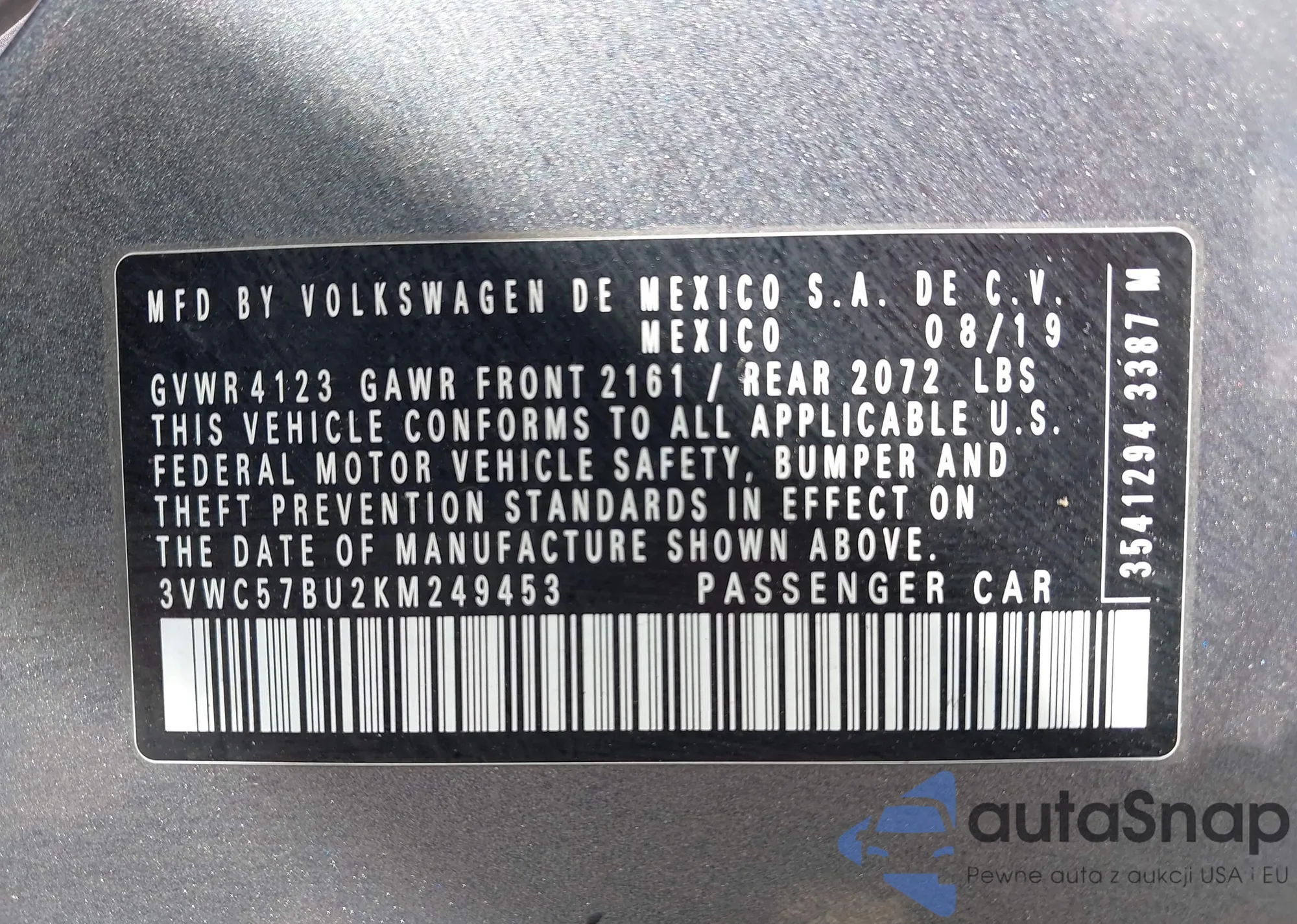 • VIN: 3VWC57BU2KM249453