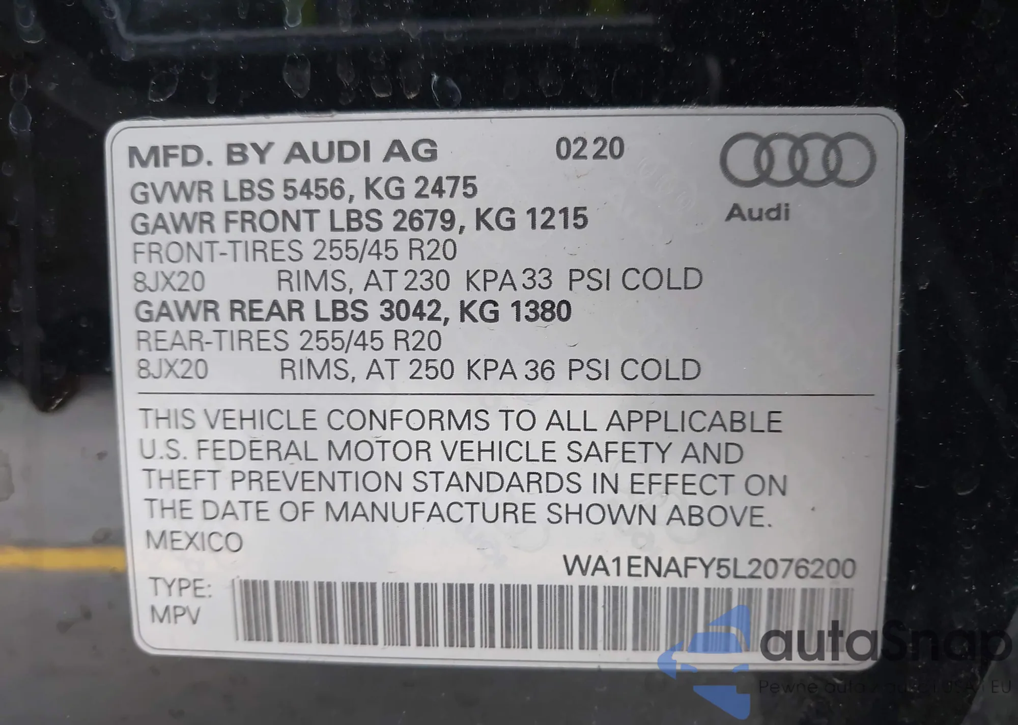 • VIN: WA1ENAFY5L2076200