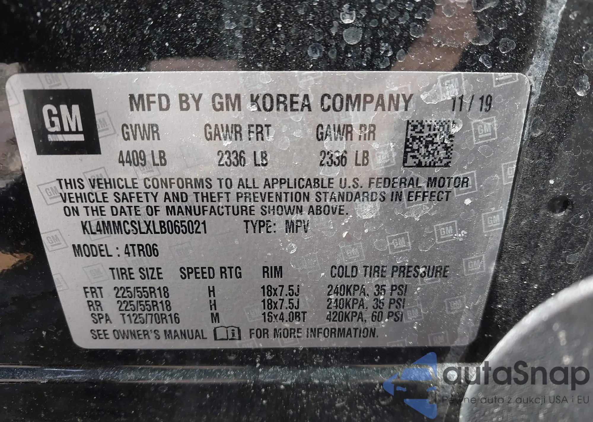 • VIN: KL4MMCSLXLB065021