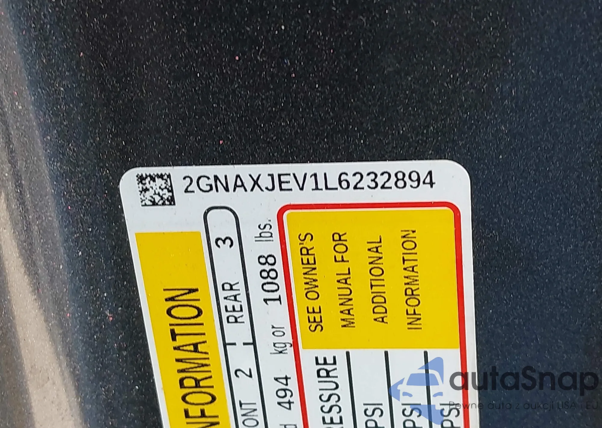 Samochód Chevrolet Equinox 2020 (VIN 2GNAXJEV1L6232894) nie był wcześniej licytowany. Dokumenty są czyste, przebieg odpowiada lub jest niższy niż średnia rynku. Sprzedaje go firma ubezpieczeniowa – polecamy zakup. Dostawa do portu zajmie ok. 6–8 tygodni.