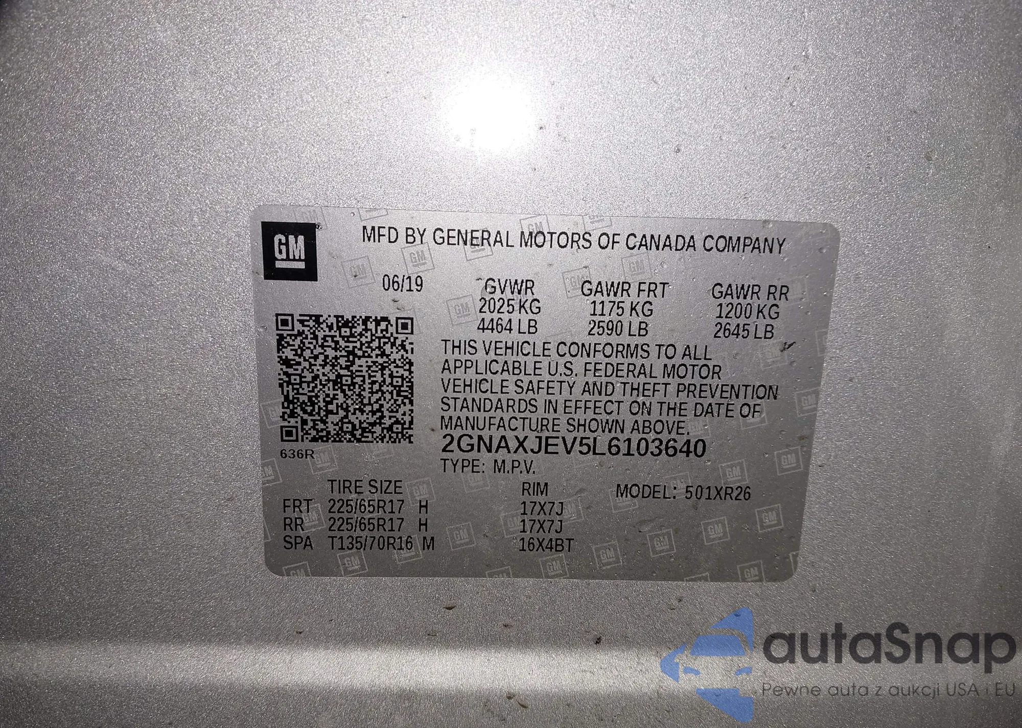 • VIN: 2GNAXJEV5L6103640