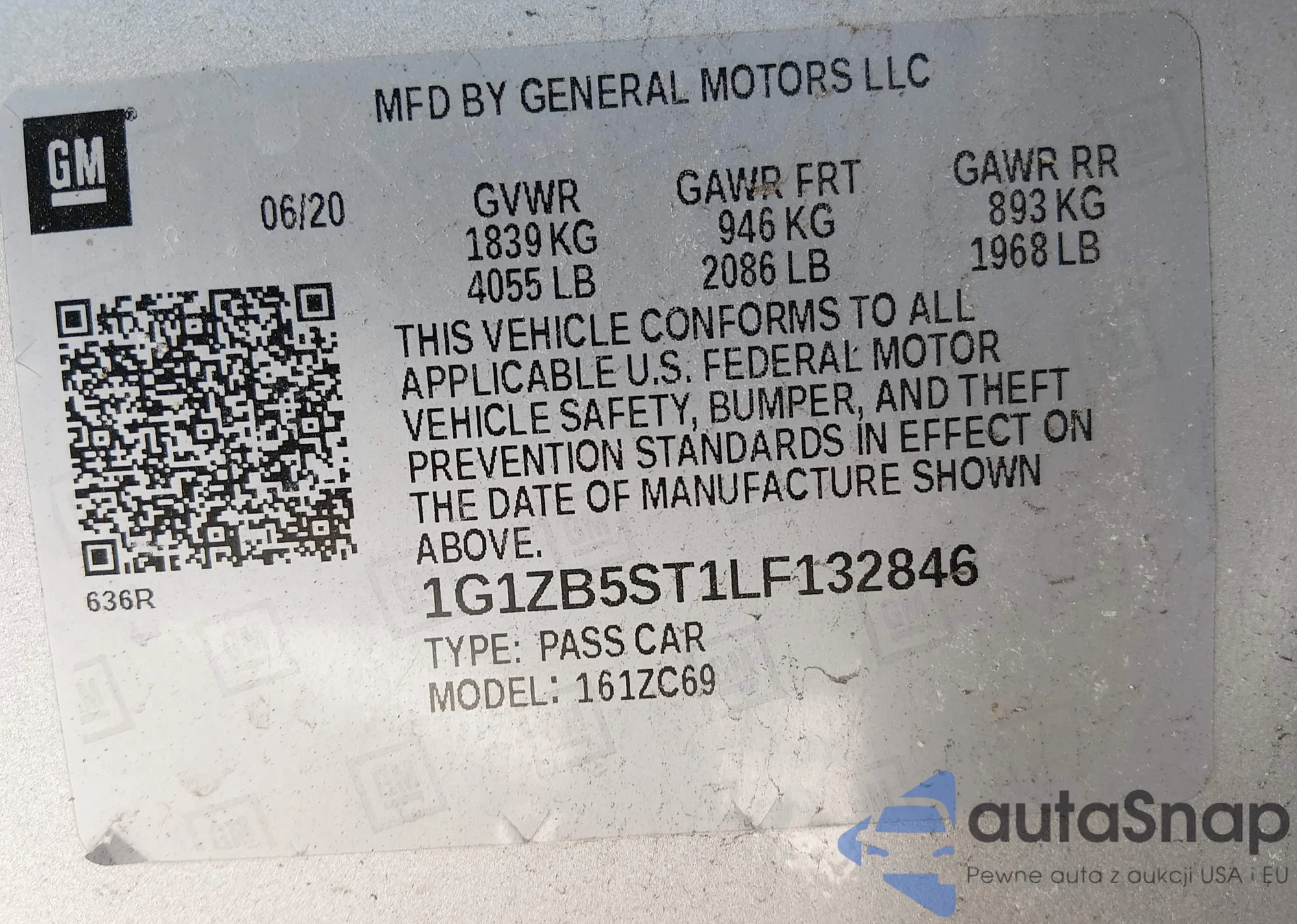 • VIN: 1G1ZB5ST1LF132846
