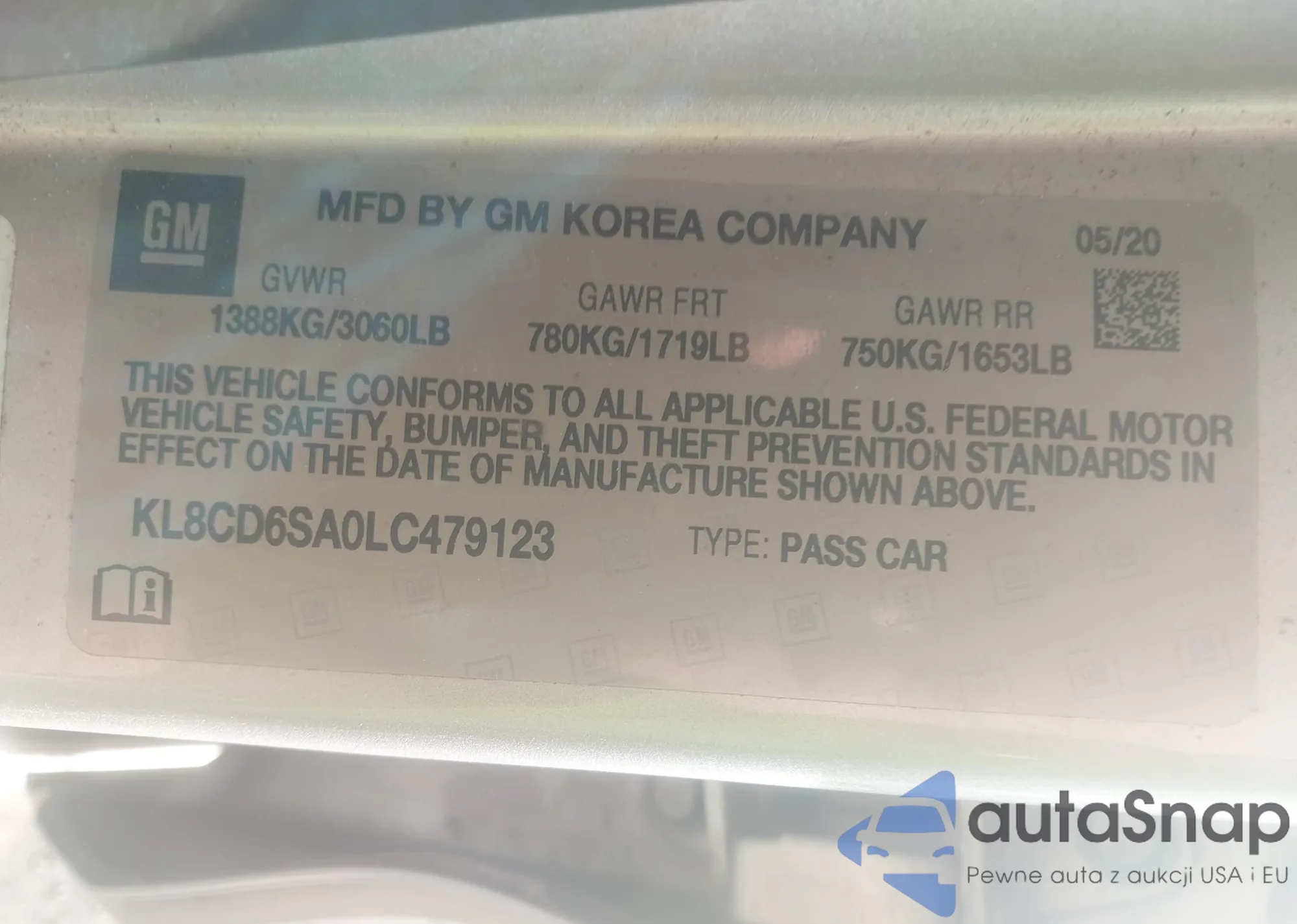 • VIN: KL8CD6SA0LC479123