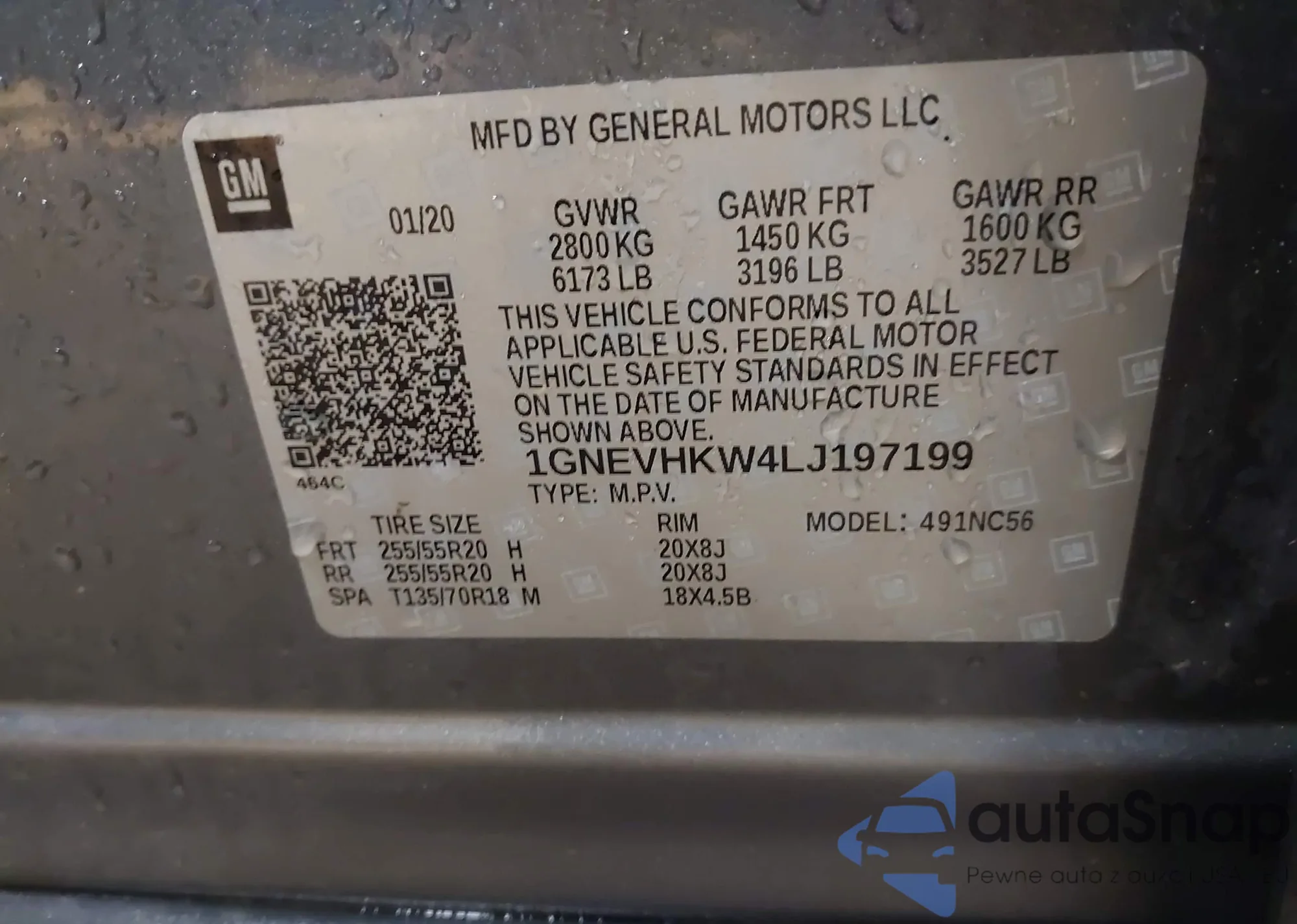 VIN: 1GNEVHKW4LJ197199