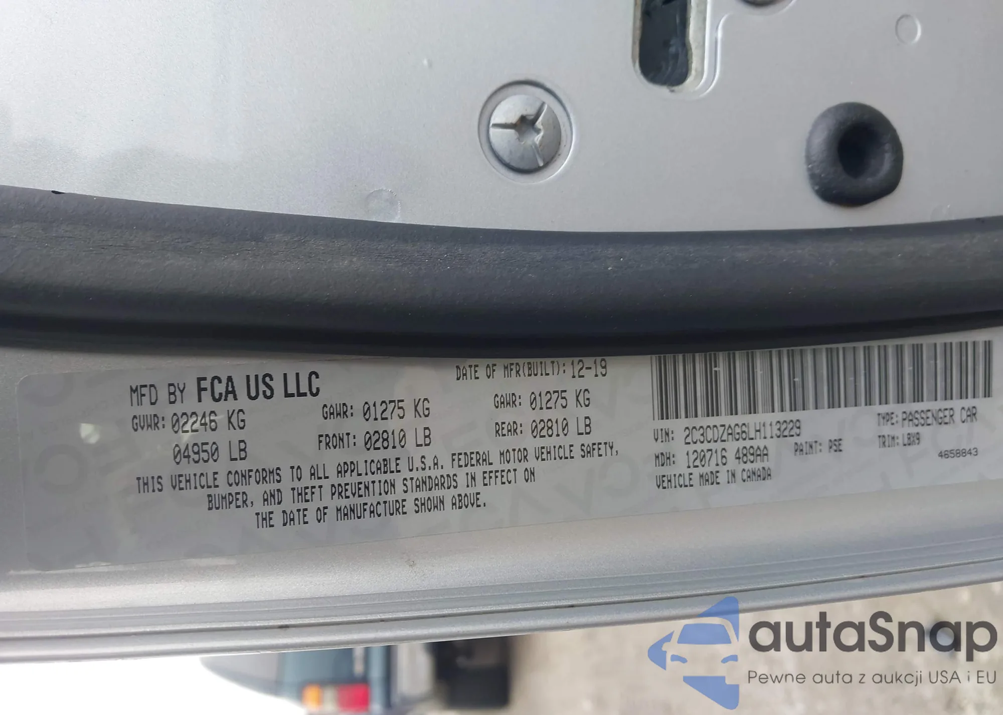 • VIN: 2C3CDZAG6LH113229