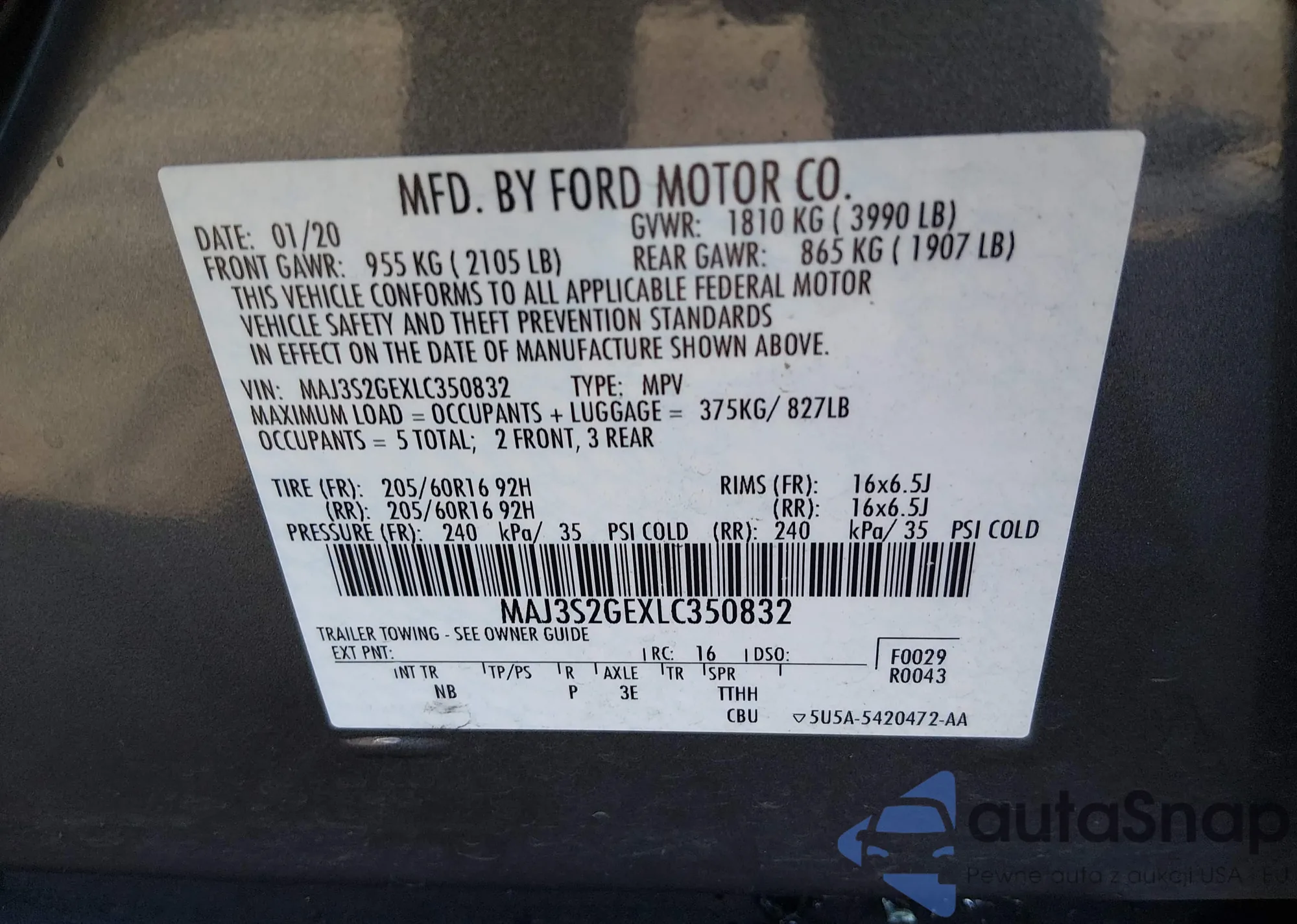 Samochód Ford EcoSport 2020 (VIN MAJ3S2GEXLC350832) ma dokumenty uniemożliwiające rejestrację. Mogą pojawić się trudności przy eksporcie i rejestracji. Skontaktuj się z ekspertami AutaSnap w celu znalezienia alternatywy.
