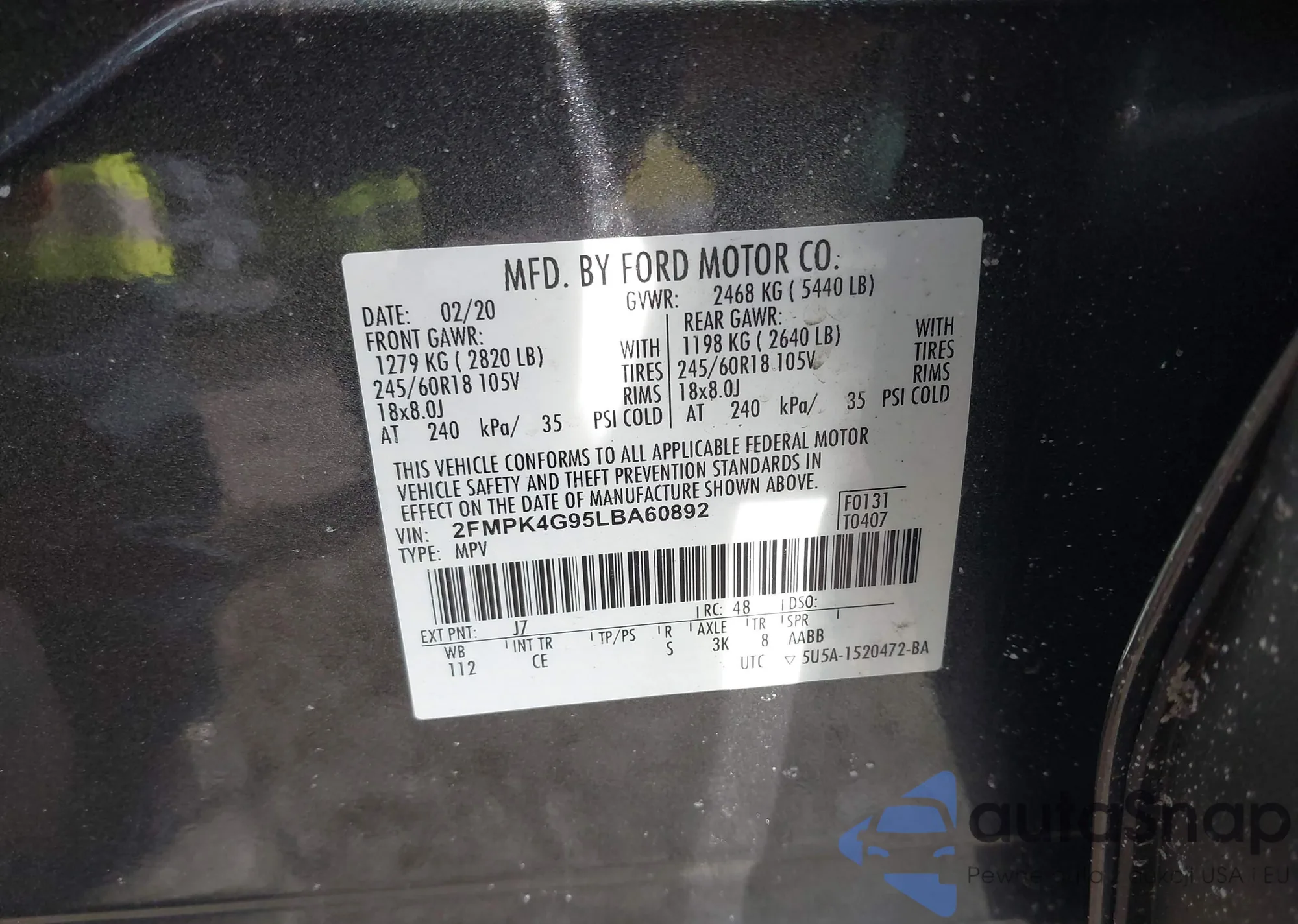 VIN: 2FMPK4G95LBA60892