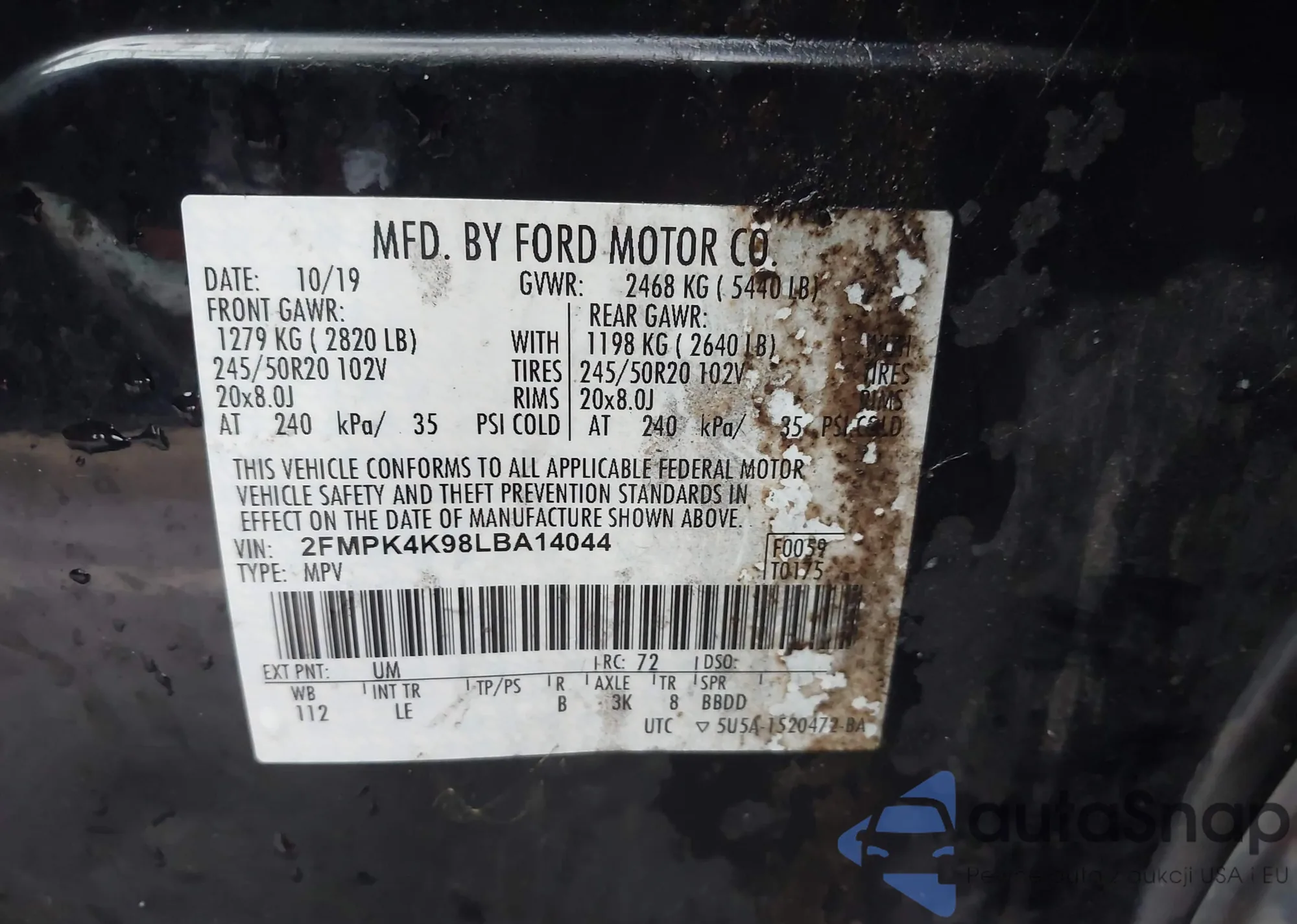 VIN: 2FMPK4K98LBA14044