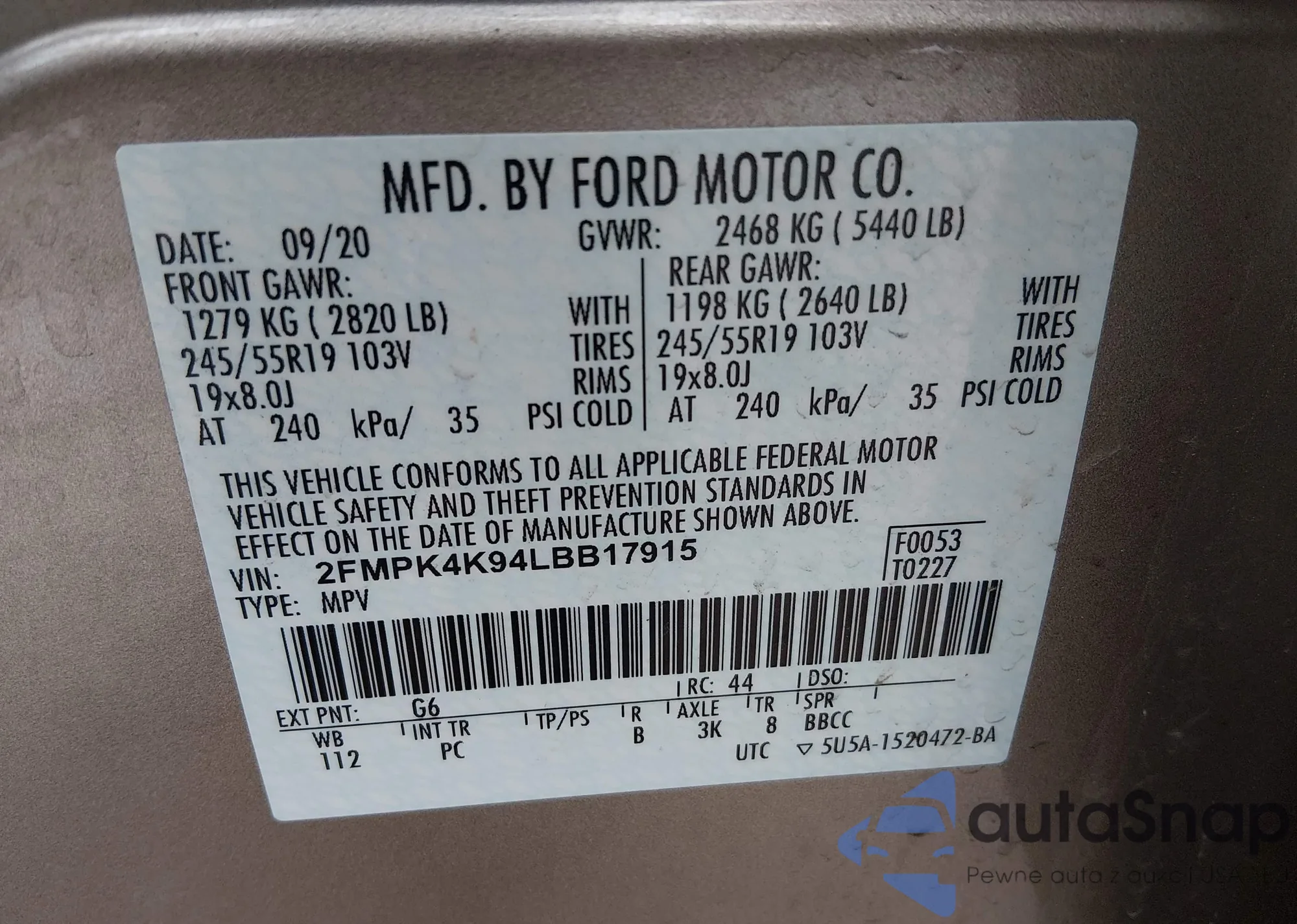 VIN: 2FMPK4K94LBB17915
