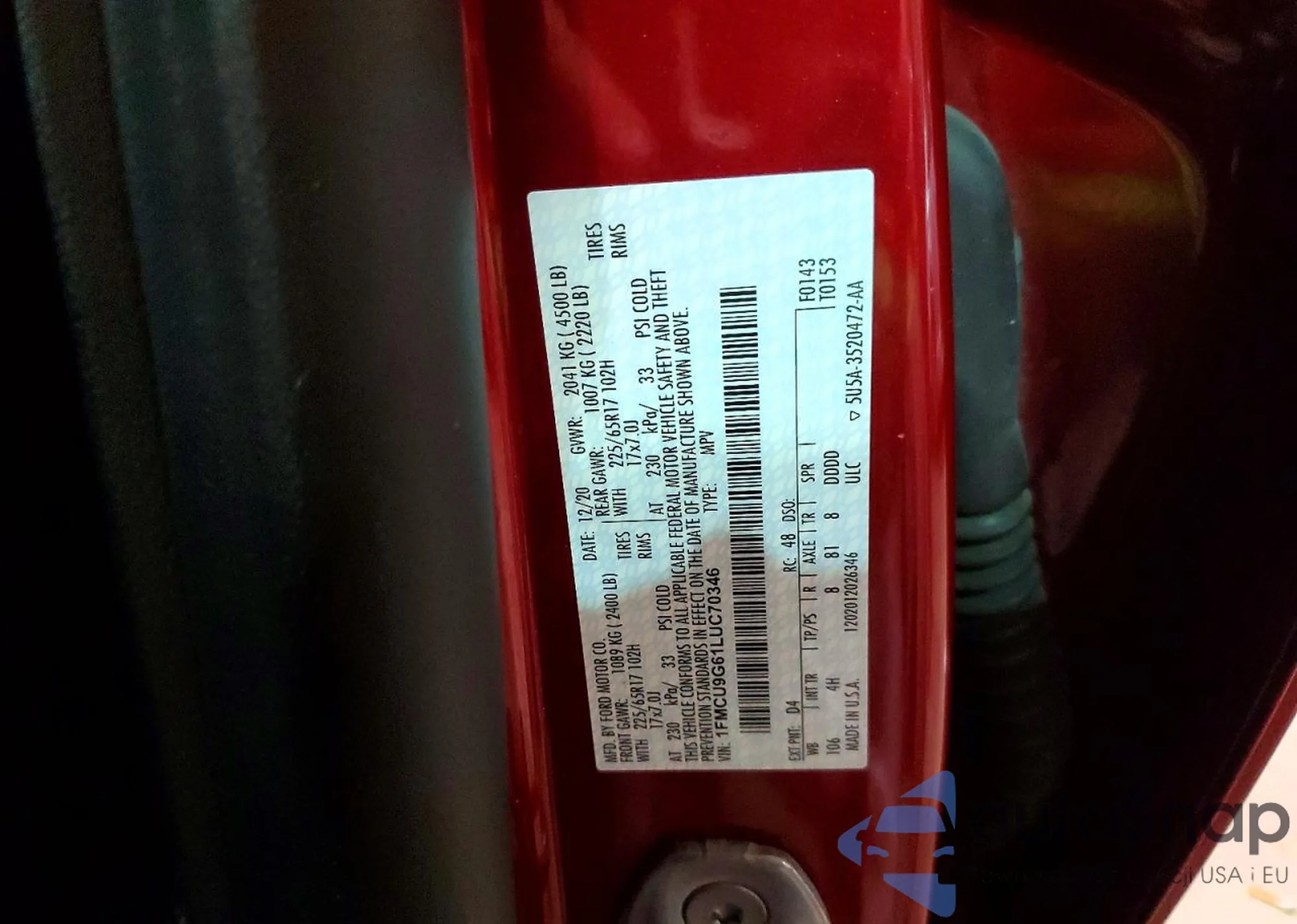 Samochód Ford Escape 2020 (VIN 1FMCU9G61LUC70346) nie był wcześniej licytowany. Dokumenty są czyste, przebieg odpowiada lub jest niższy niż średnia rynku. Sprzedaje go firma ubezpieczeniowa – polecamy zakup. Dostawa do portu zajmie ok. 6–8 tygodni.
